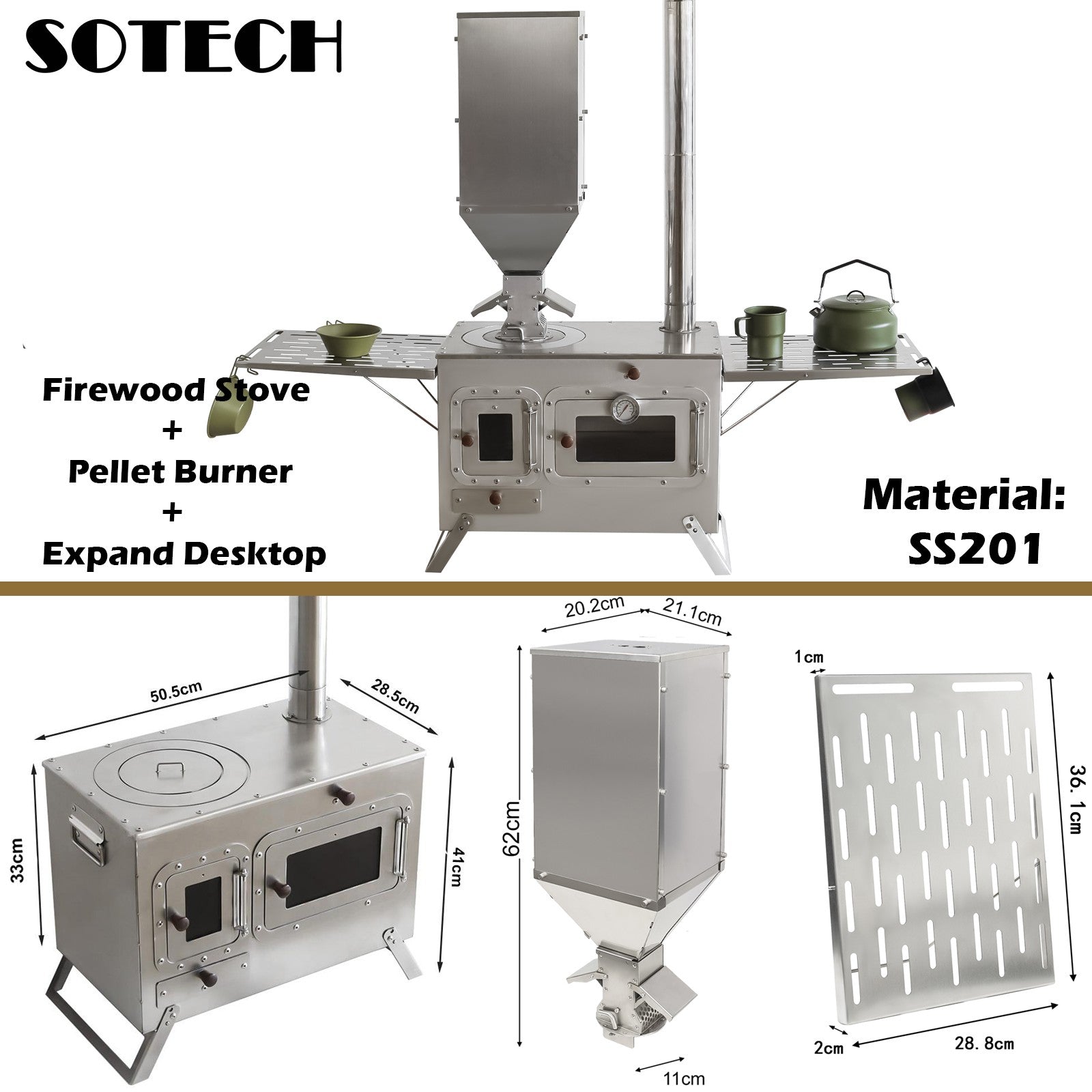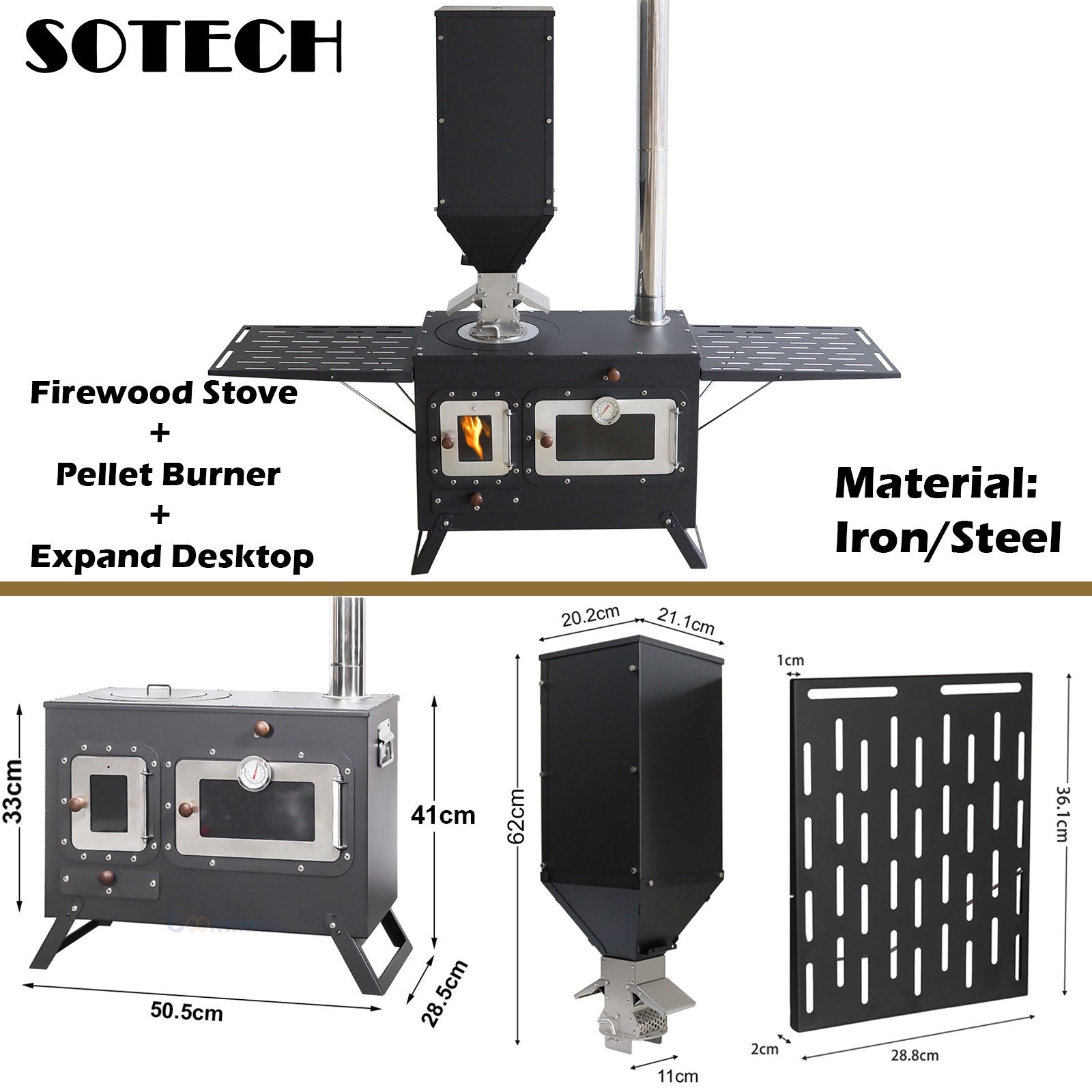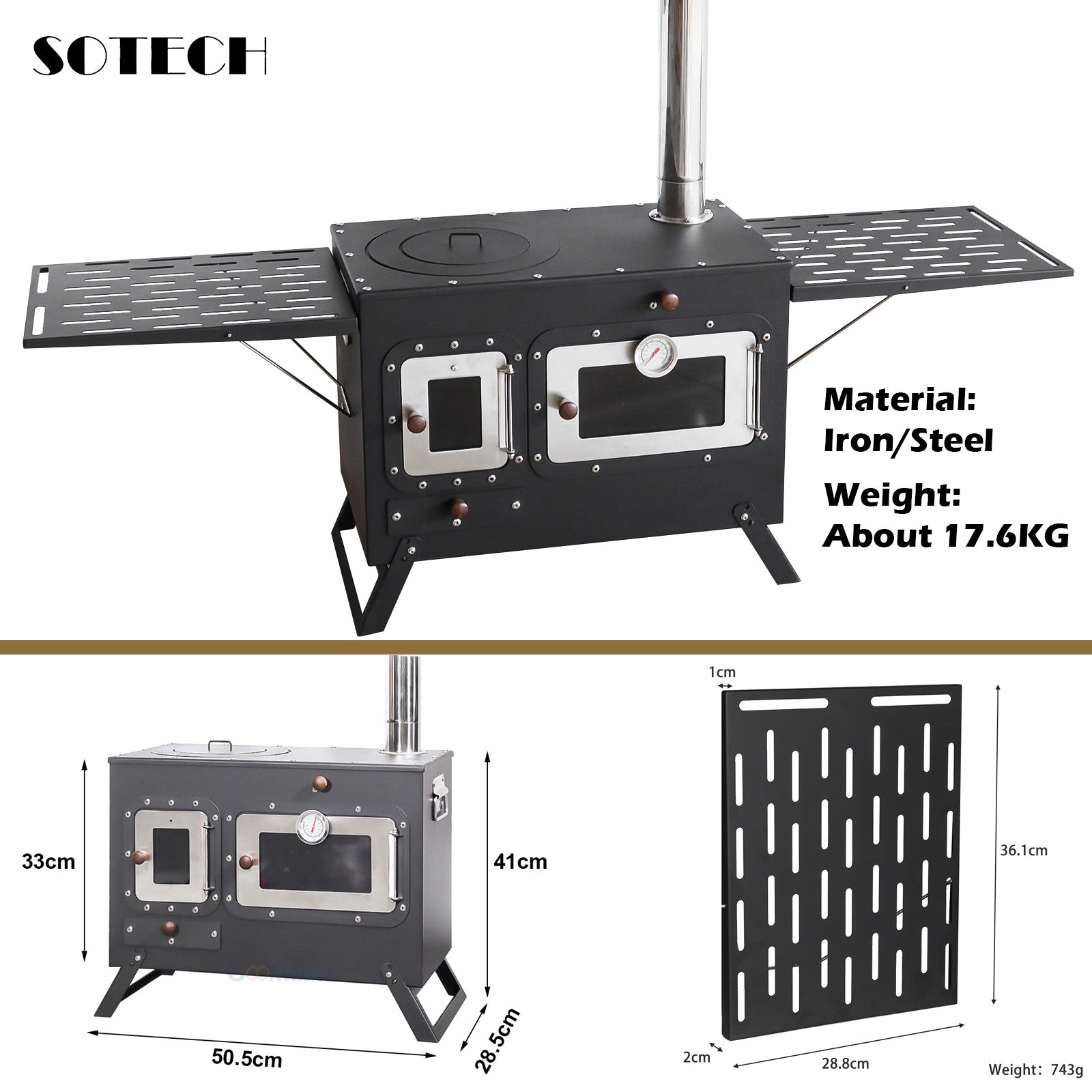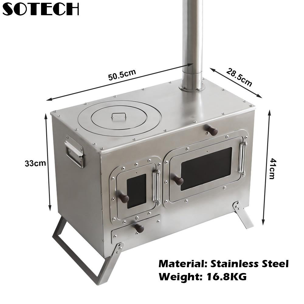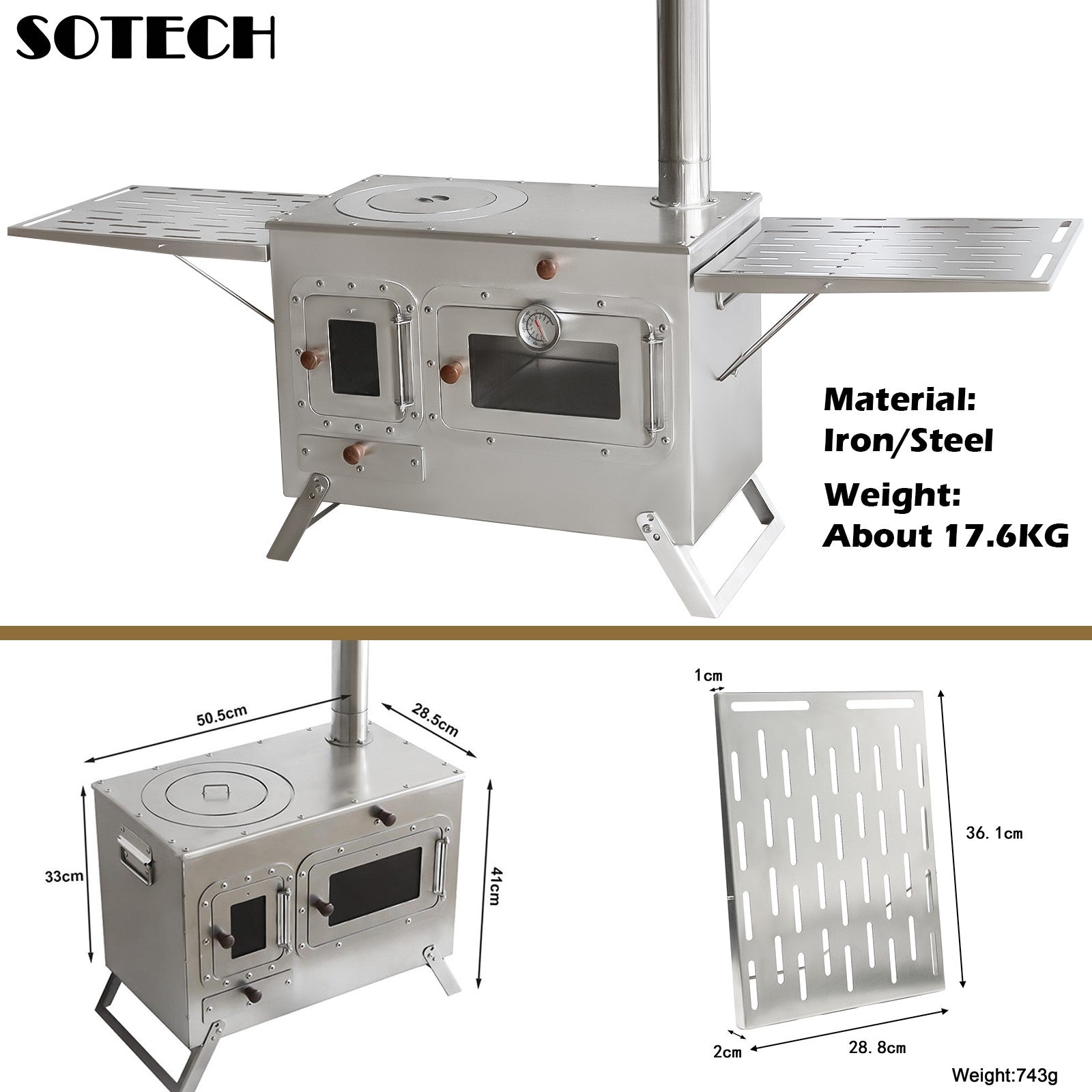 Multi-functional Camping Firewood Stove Portable Outdoor Burner with oven Stove Tent Hiking Picnic BBQ Roasting Heating Pizza