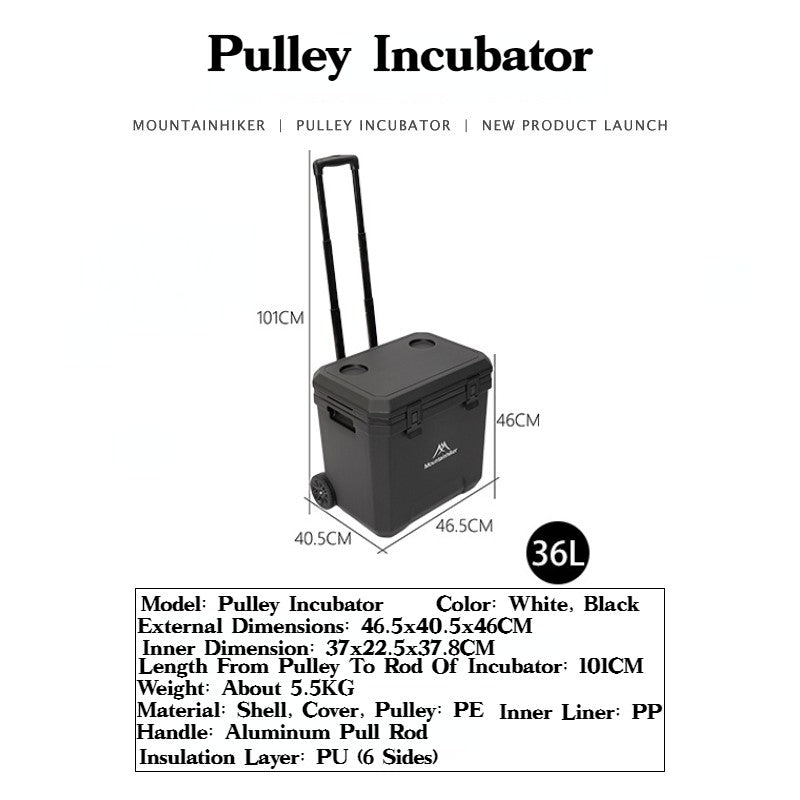 MOUNTAINHIKER 36L Outdoor Refrigerator with Trolley Wheels Incubator Portable Warm Box BBQ Car Pulley Warm Box Refrigerator Box