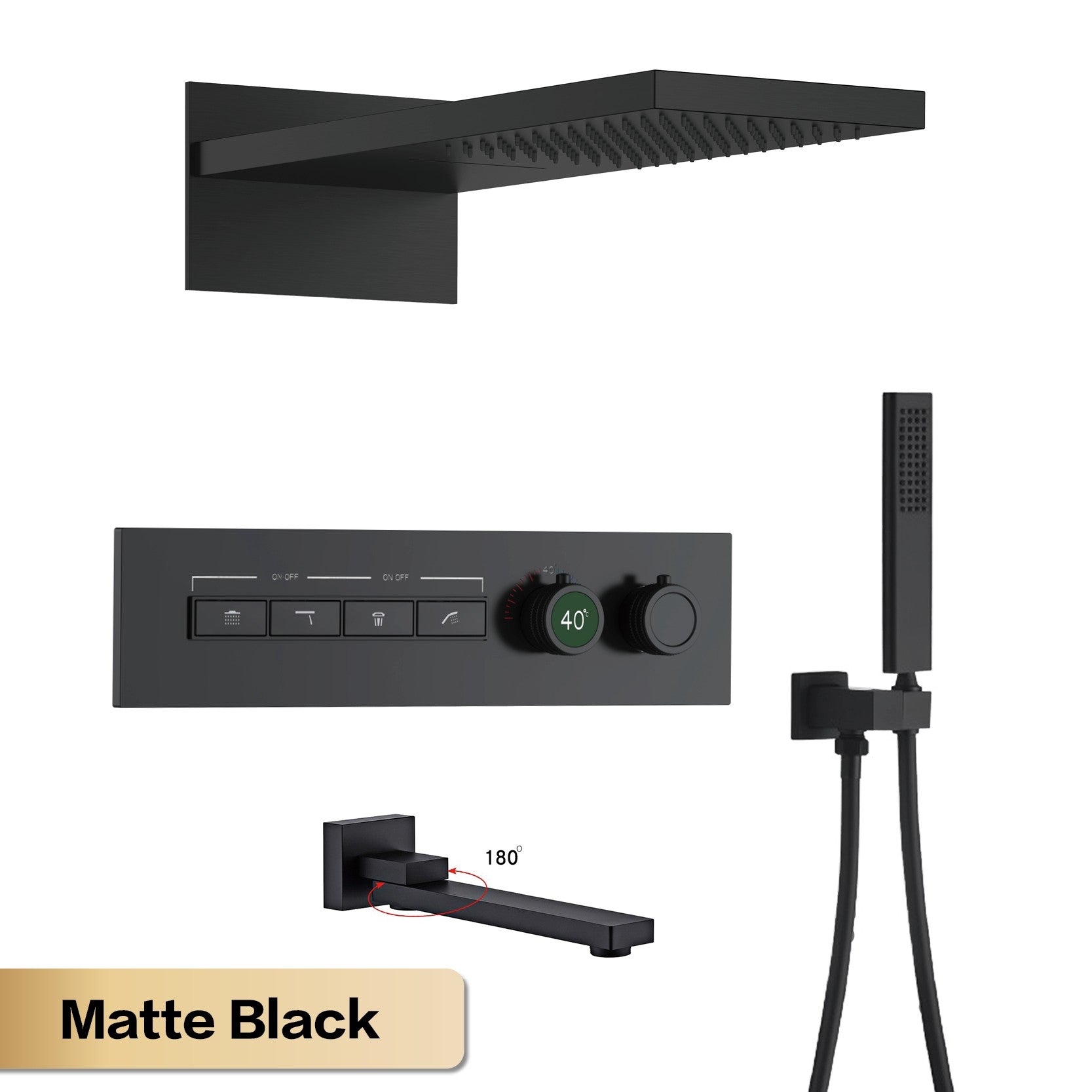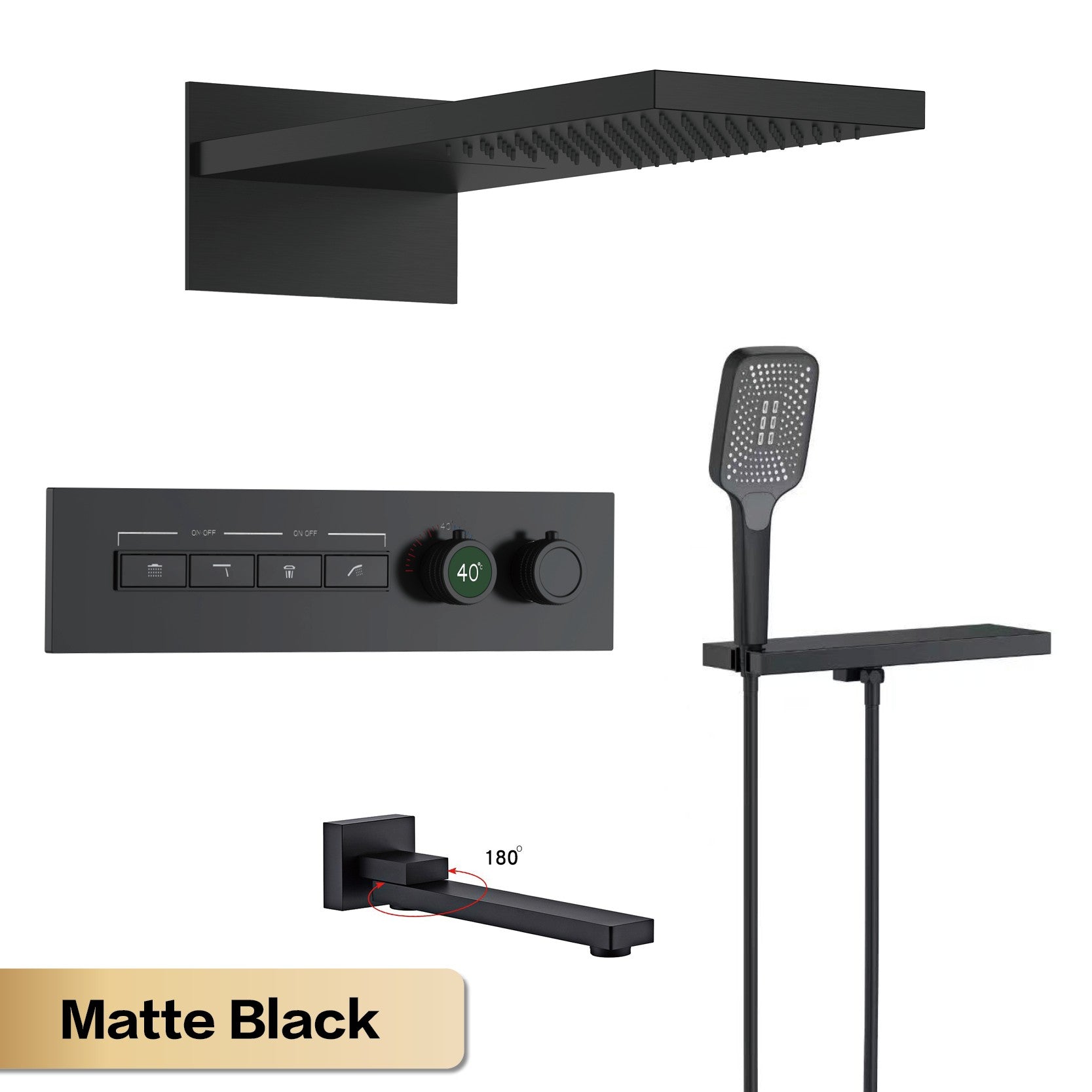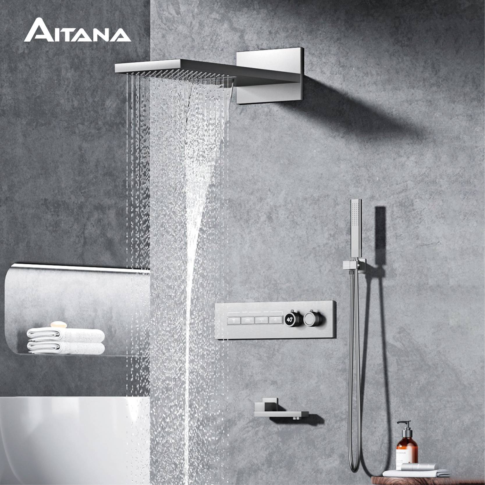 Luxury gun gray brass thermostatic shower system wall mounted LED digital display hot and cold water bathroom embedded faucet