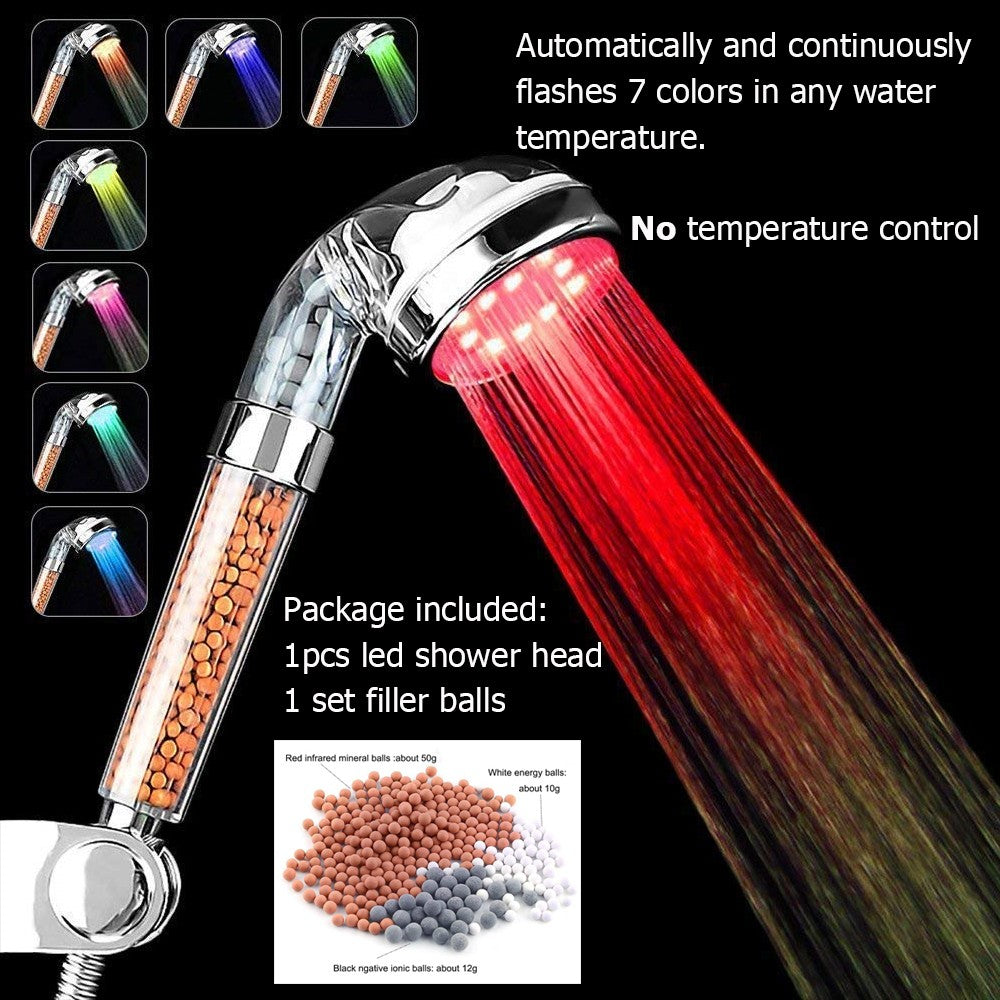 Zloog Bathroom LED Shower Head Color Changing Temperature Sensor Handheld Showerhead Spa High Pressure Anion Filter Shower Head