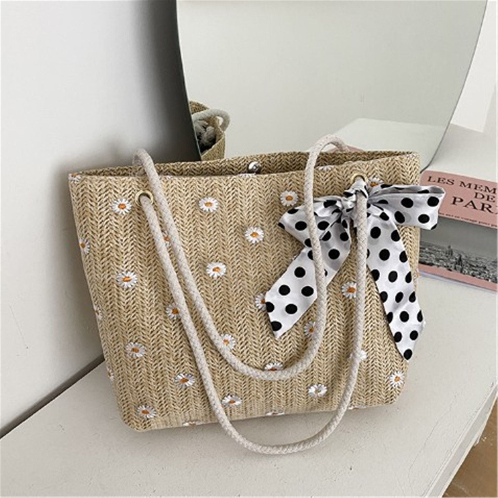 New Fashion Straw Shoulder Bags Fashion Large-Capacity Silk Scarf Tote Bag Beach Bag Women Shopping