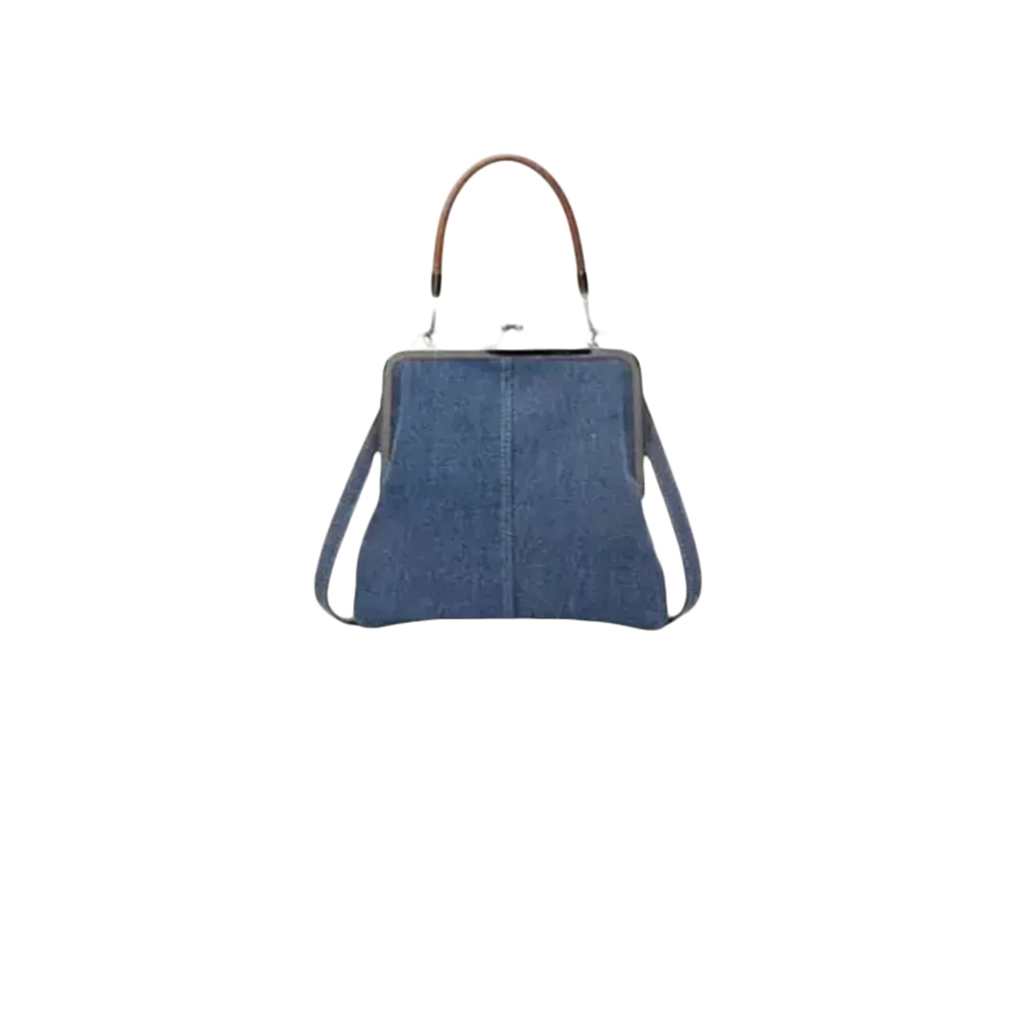 Women's Denim Crossbody Tote Handbag With Kiss Lock Clasp Vintage Coin Purses Bag For Outdoor Portable Beach Wedding