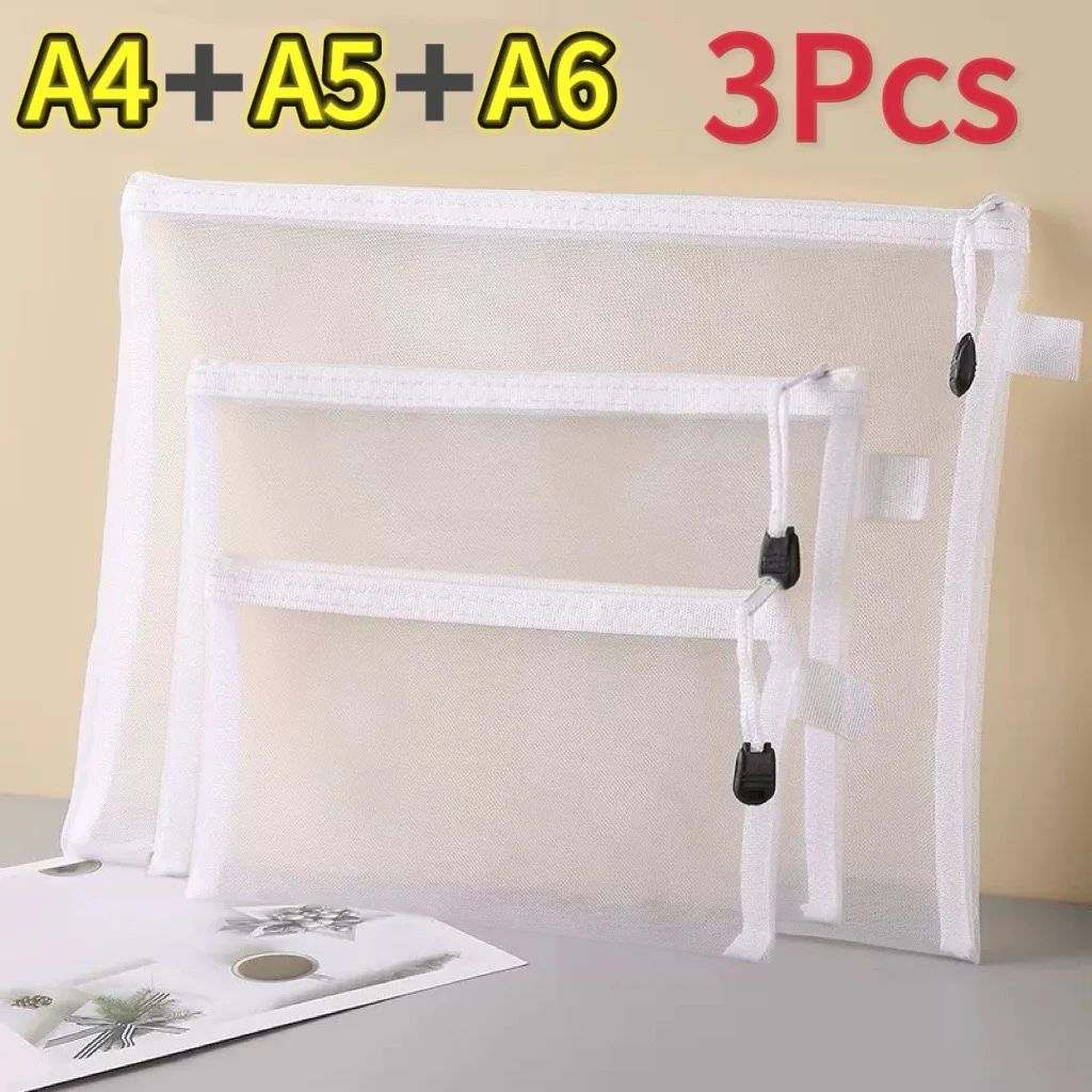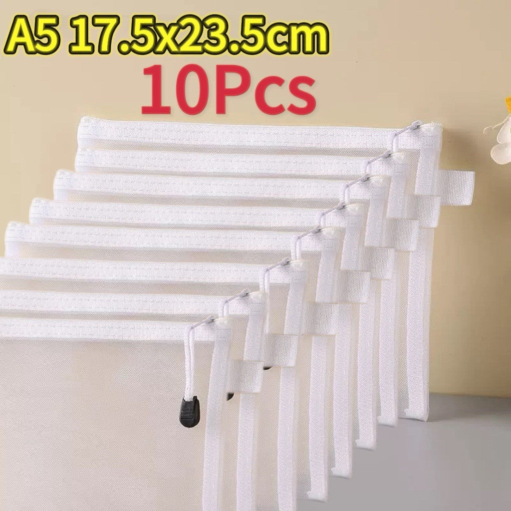1-12pcs Mesh Zipper Pouch Student Waterproof Zip File Bag Makeup Bag School Office Supplies Miscellaneous Storage Organizer