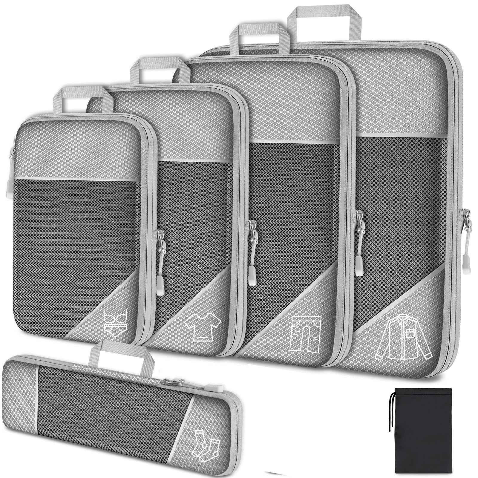 6PCS Travel Compressed Packing Cubes Storage Organizer Set With Shoe Bag Mesh Visual Luggage Portable Lightweight Suitcase Bag