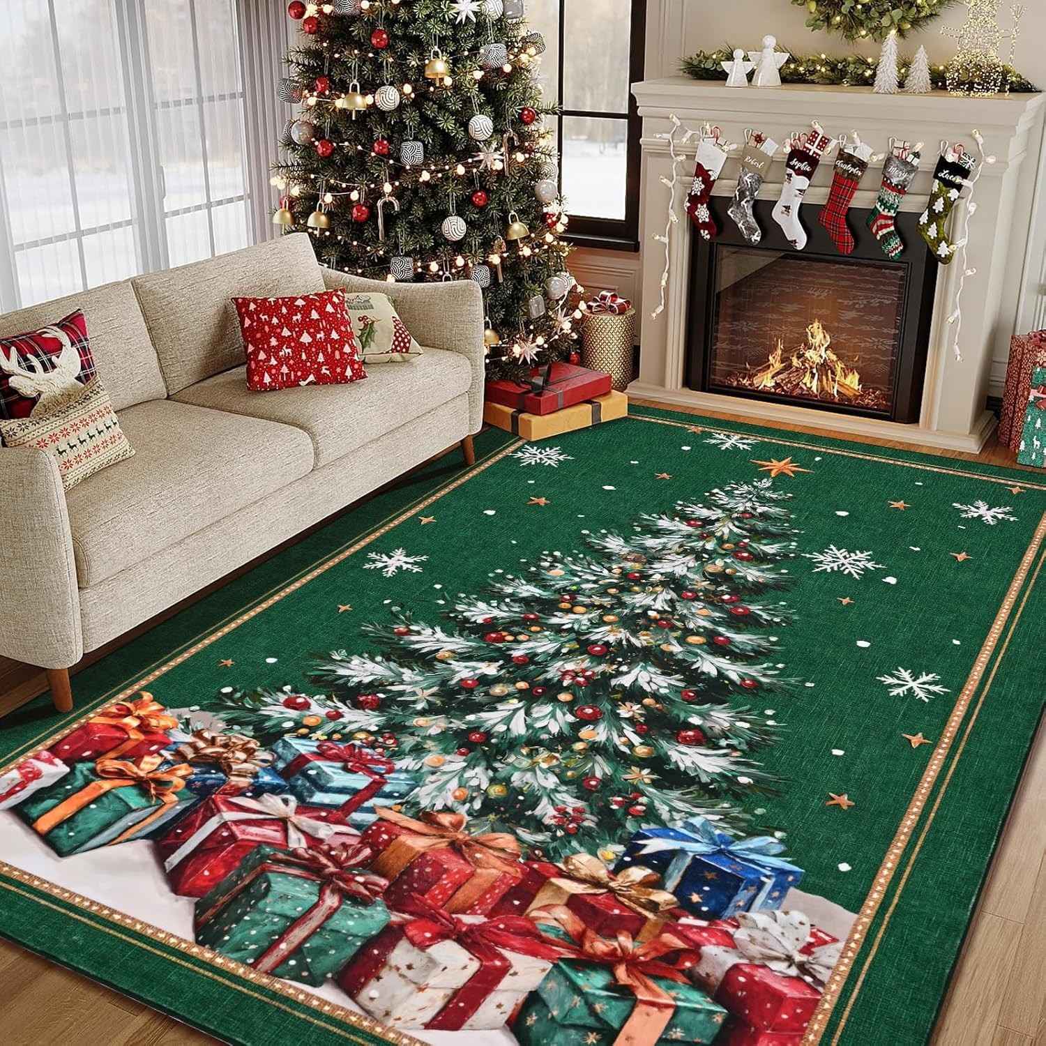 Christmas Rug Washable Non Slip Vintage Christmas Tree Living Room Entryway Mat Indoor for Bedroom Dining Room Playroom Carpet