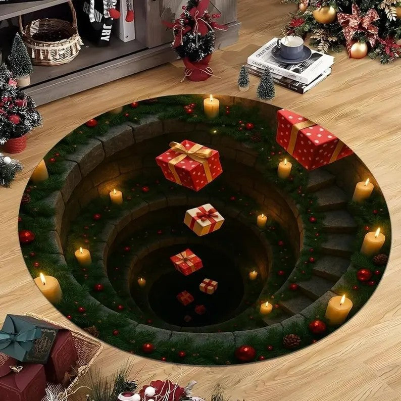 VIKAMA Christmas Round Crystal Velvet Carpet, Living Room Sofa Mat, Non-slip Bedroom Bedside Rug, Holiday Home Decoration
