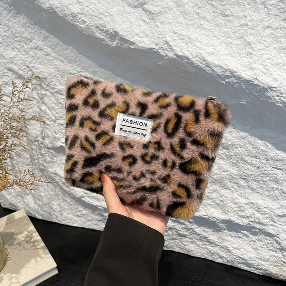 INS Style Canvas Sanitary Mat Bag Leopard Change Purse Coins Keys Wallet Zipper Design Credit Card Holder Cosmetics Napkin