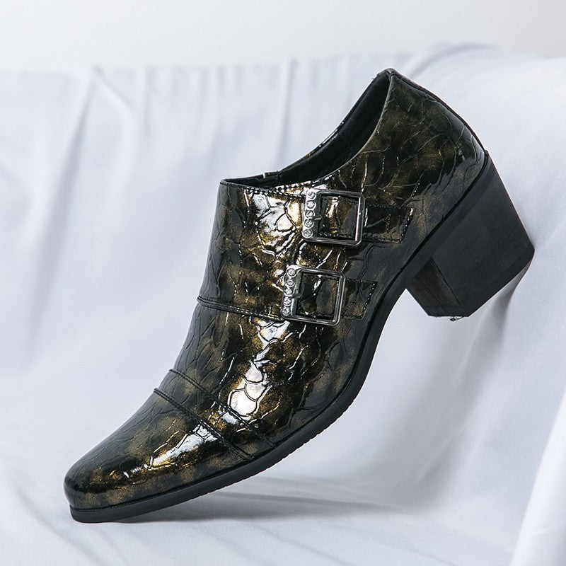 Fashion Buckle Leather Shoes For Men Big Size 46 Pointed Dress Shoes Man Quality Bussiness High Heels Shoes Man chaussure hommes