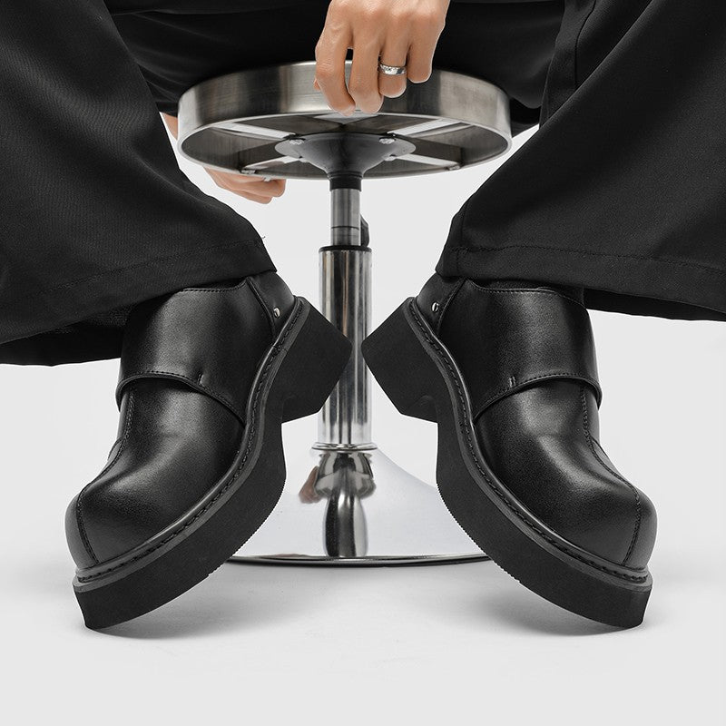 Velcro slip in formal shoes for men thick soled British style black metal decorative loafers casual patent leather shoes trendy