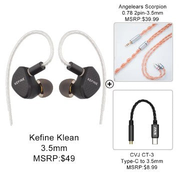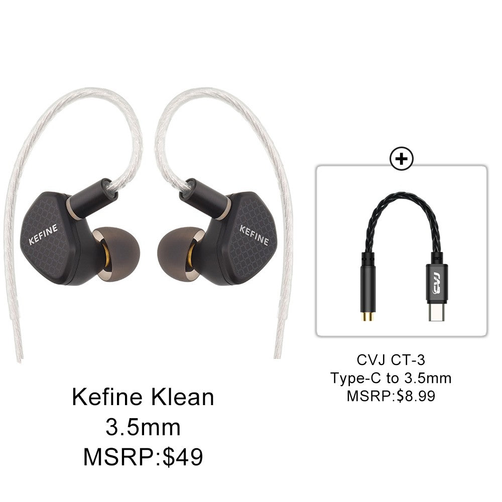 Kefine Klean 10mm DLC Diaphragm Dynamic Driver IEMs Hi-Fi In-ear Earphone with Nozzles and Comfortable 2-pin Silver-plated Cable