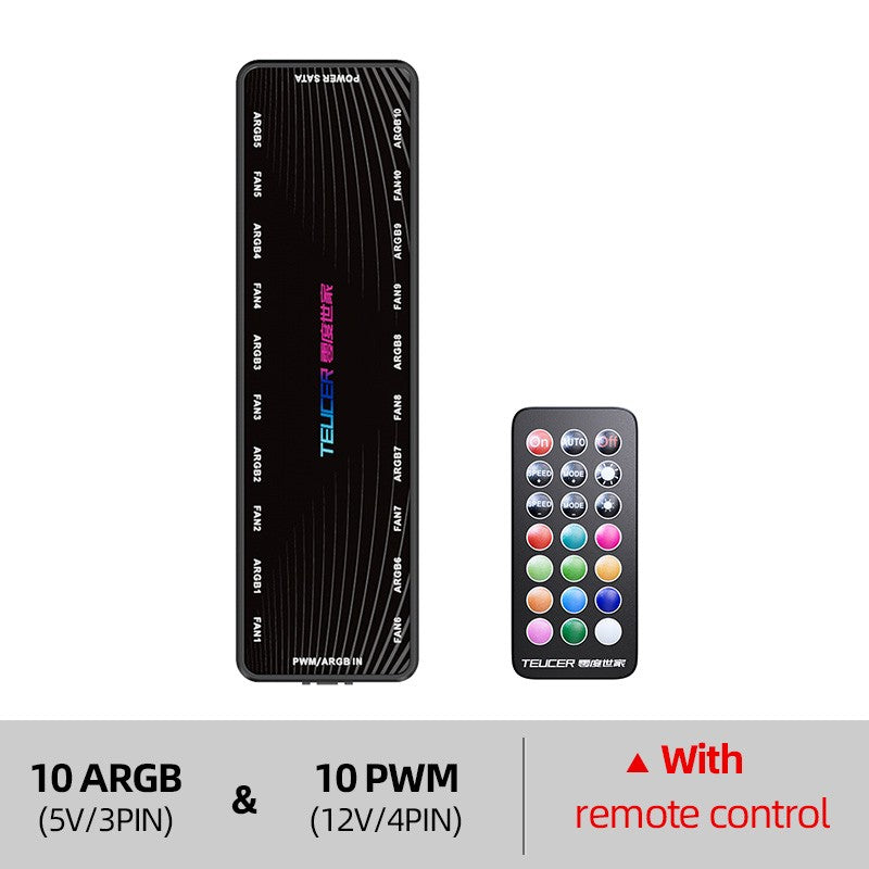 Teucer 1 to 10 12V/4Pin PWM 5V/3Pin Addressable ARGB Hub Splitter Adapter SATA Power Supply Interface Concentrator For Case Fan