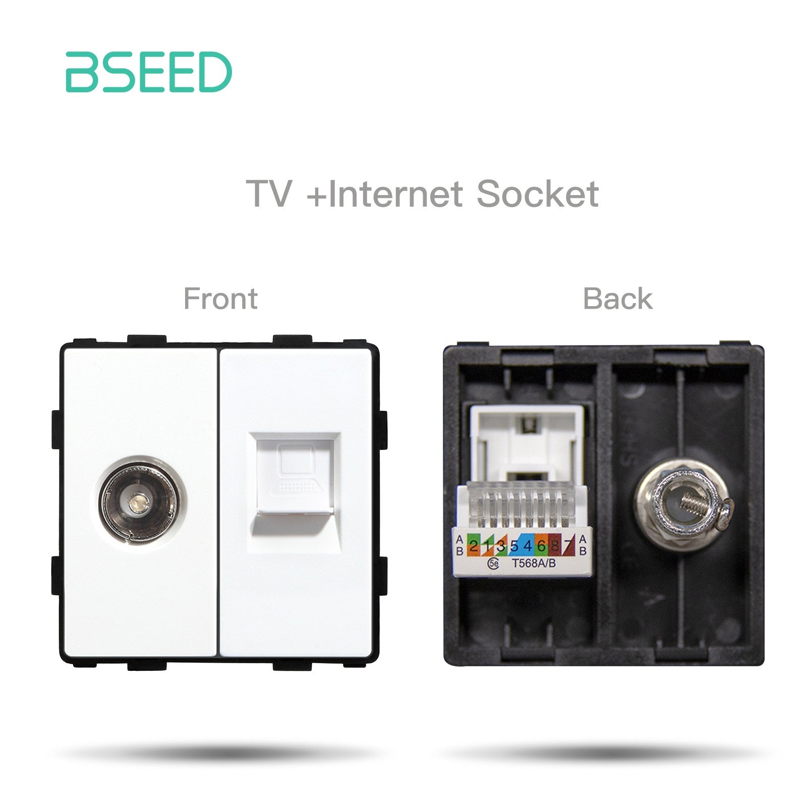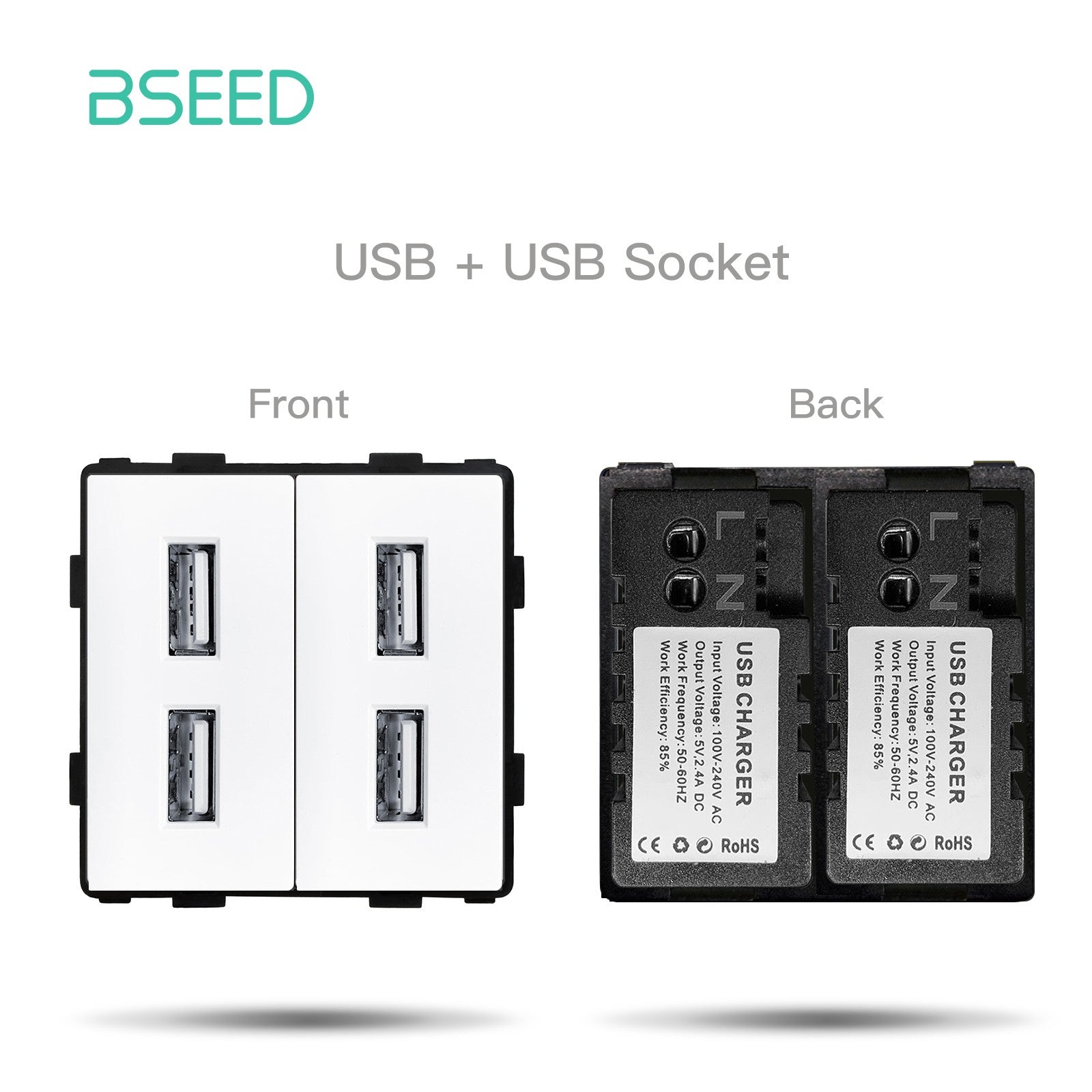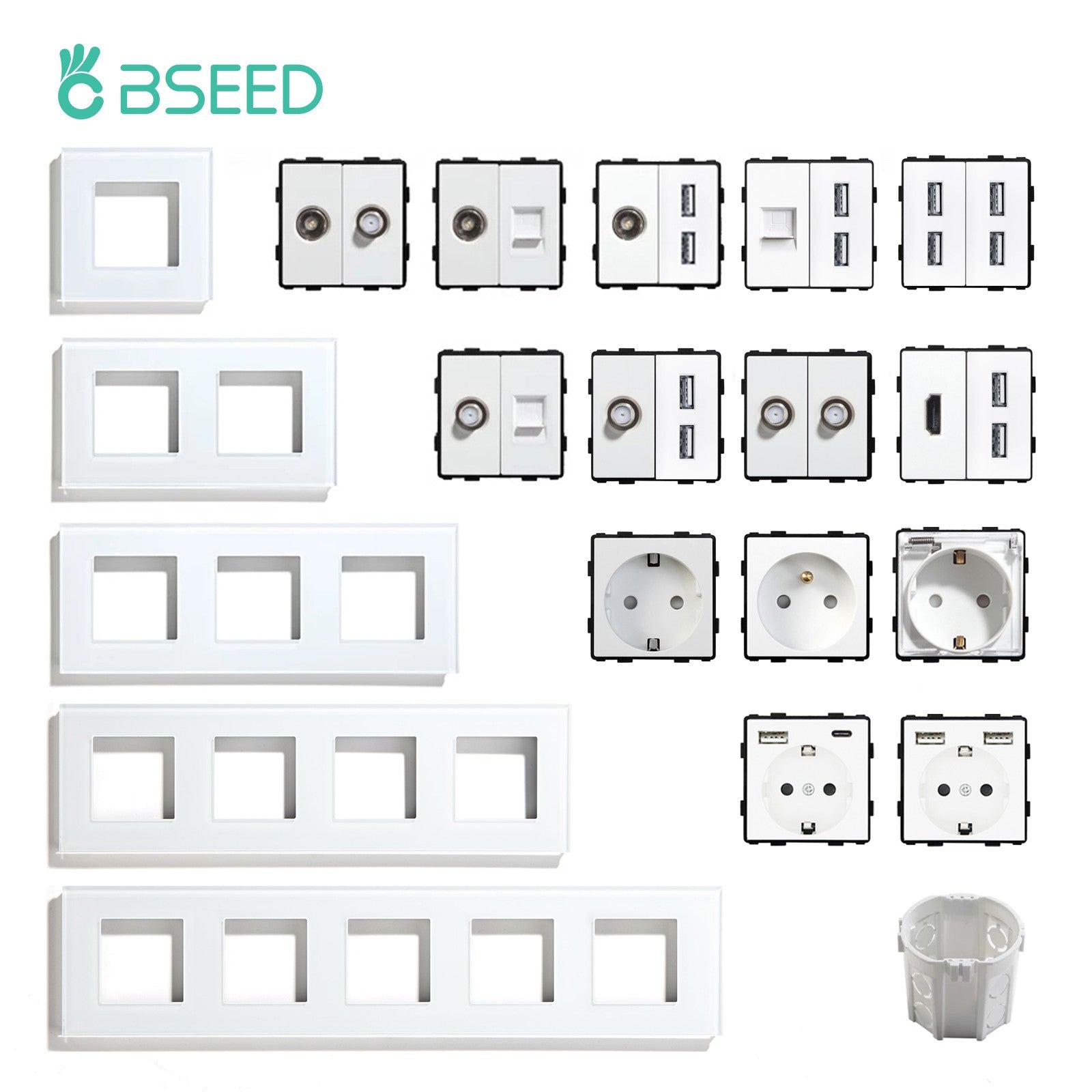 BSEED EU Standard Wall Socket with USB RJ45 TV Satellite Plug Glass Panel DIY Free Combination Function Part for Home Automation