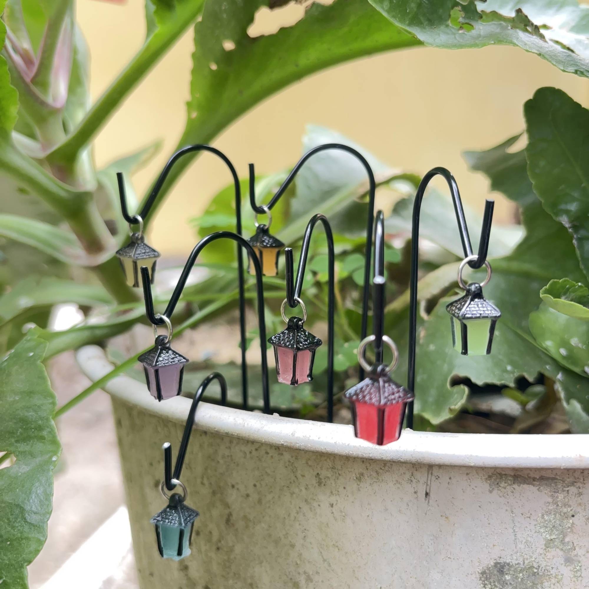 4-Pack Lanterns with Iron Hooks, Luminous Garden Stakes, Solar-Powered Resin Fairy Miniature Models with Colorful Lanterns, Rural Outdoor Decorations Suitable for Halloween Indoor Tabletop Display and Crafts, Solar Outdoor Decorations