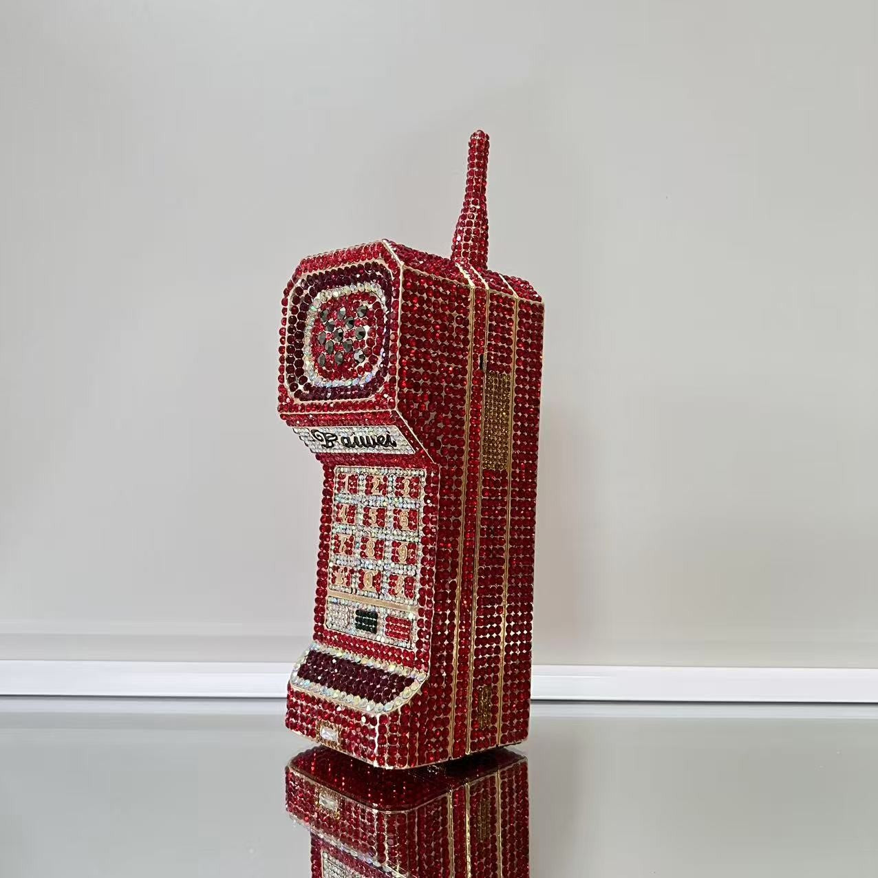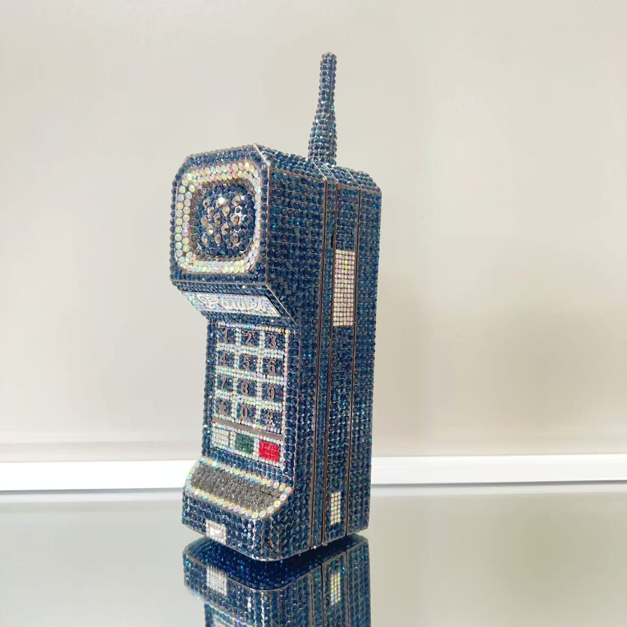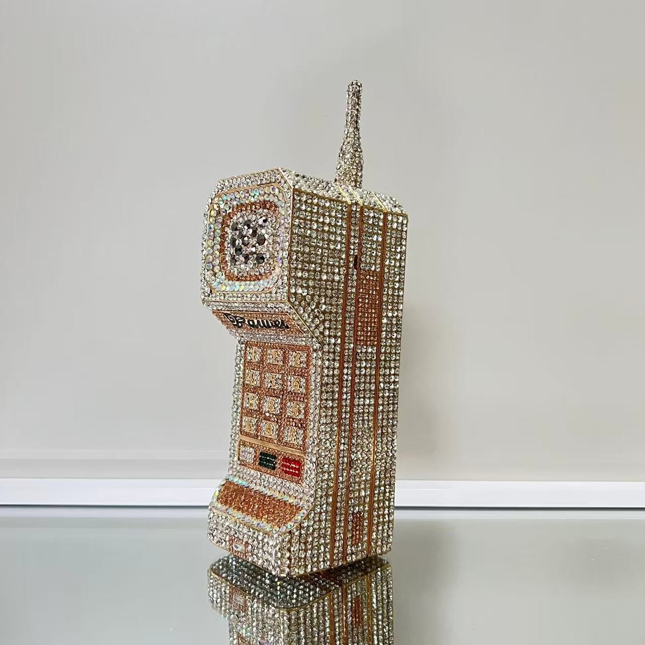 XIYUAN Newest Cellphone Shaped Rhinestone Evening Clutch Purse Luxury Diamond Wedding Party Bag Lady Pink Crystal Bridal Handbag