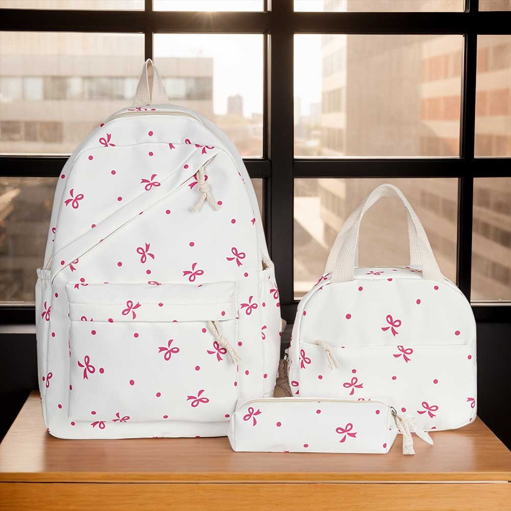 3-in-1 Bow Tie College School Backpack with Lunch Bag Pencil Case School Backpack Set Student Backpack for Teens Women Student