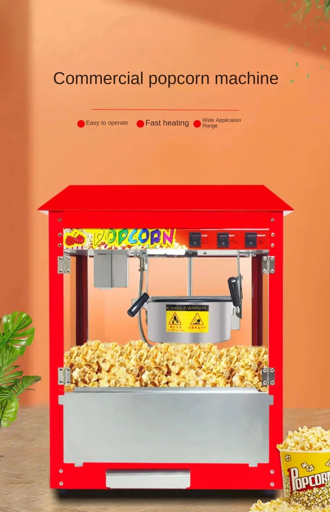 220V Commercial Popcorn Maker Machine, Large Capacity, Quick Heating, for Business Events and Parties