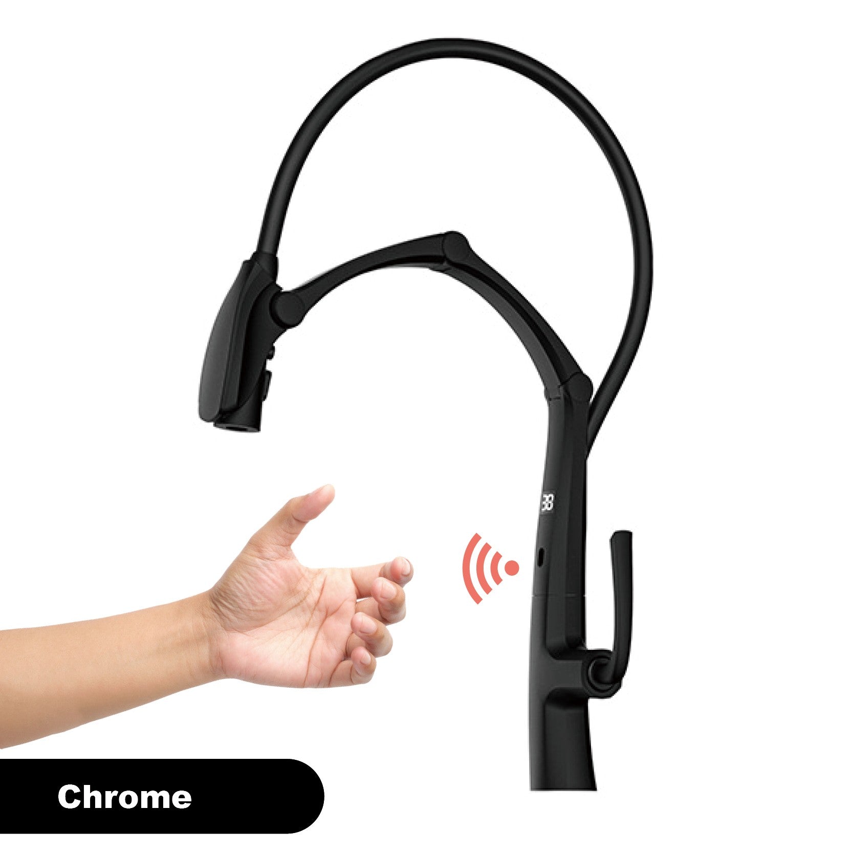 Luxury Gunmetal Brass Kitchen Faucet with LED Display,Sensor&Pull-Out 3-Function Spray,Touchless High Pressure Water-Saving Tap