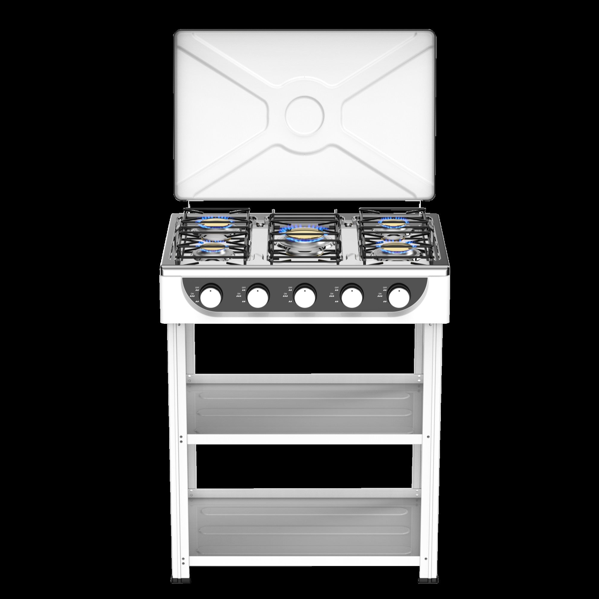 5 Burner Cooktop Commercial Kitchen Gas Stove Free Standing With Iron Lid LPG Gas Powered Portable for Outdoor Installation