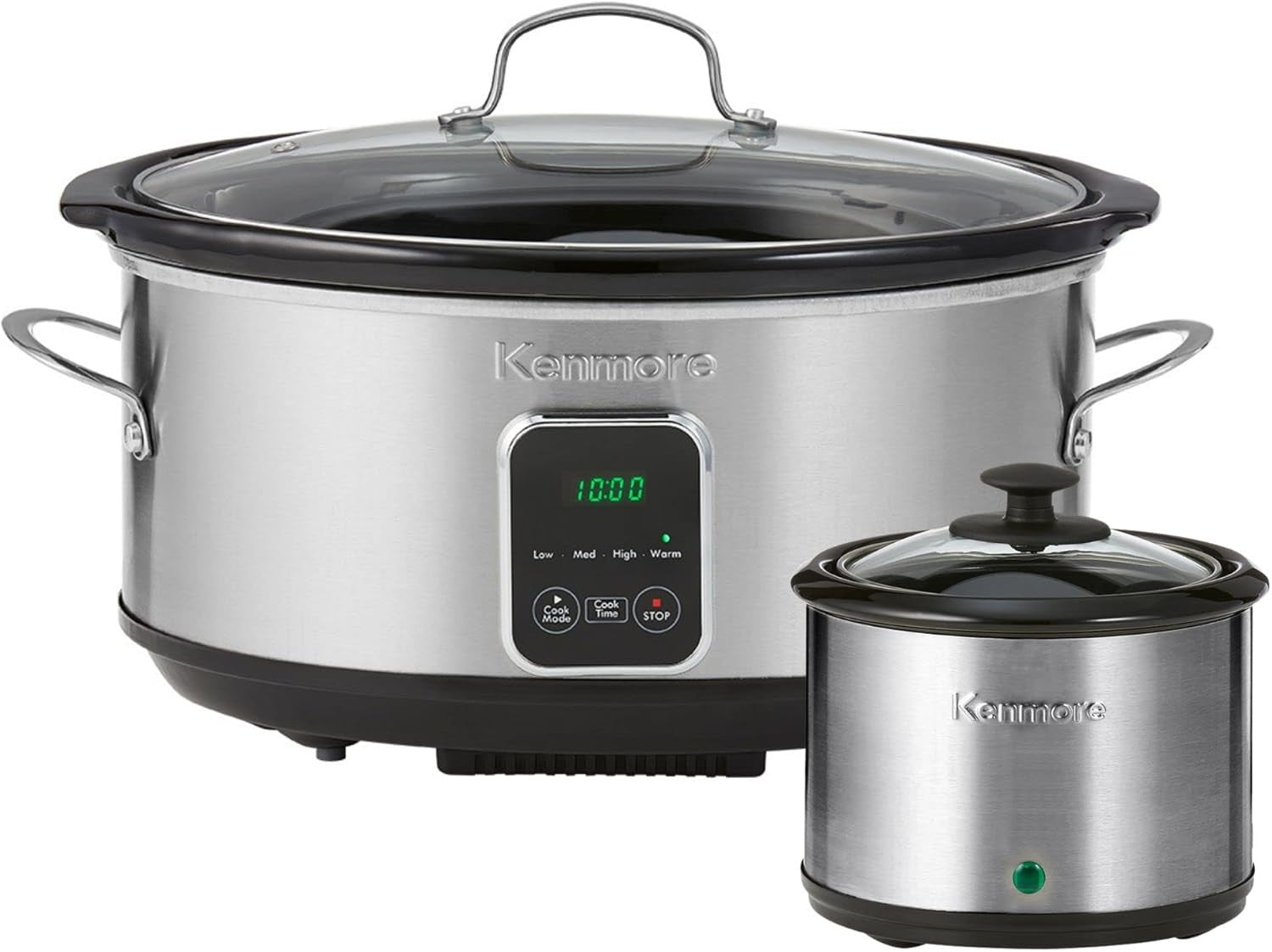 Kenmore Stainless Steel Programmable Slow Cooker 7 Quart Electric Crock Pot Kitchen Appliance for Warm Rice And Sous Vide Stew