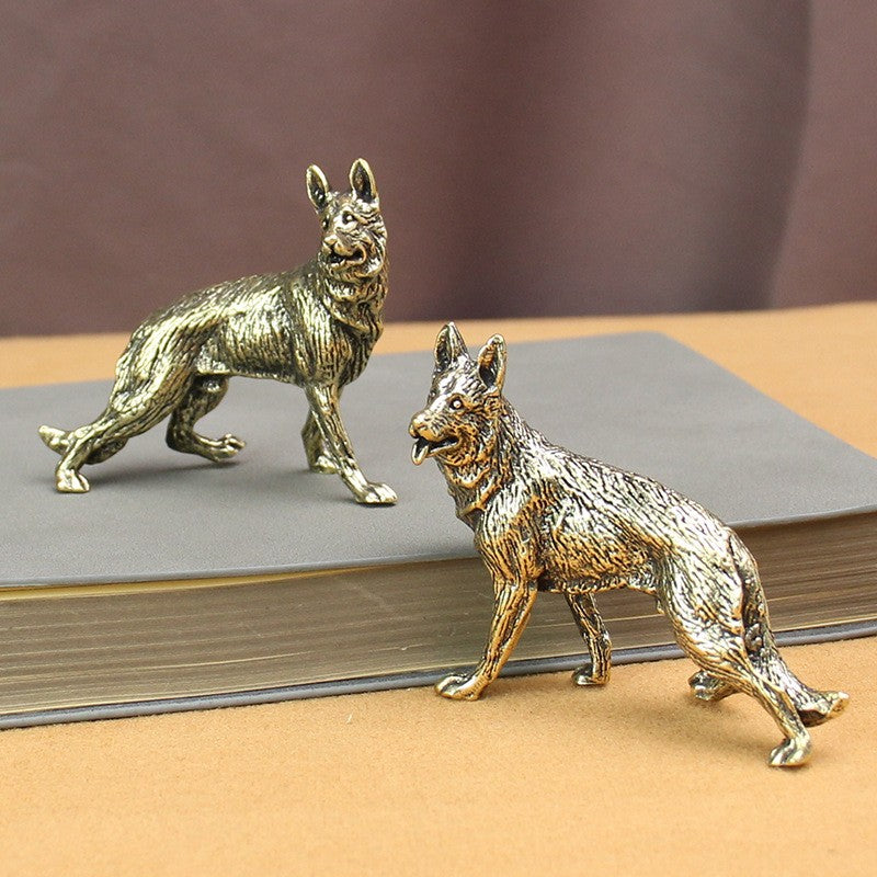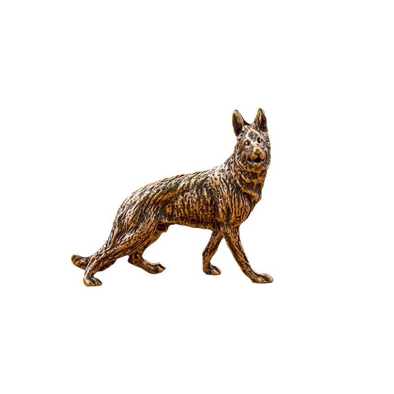 Vintage German Shepherds Dog Statue Ornament Pure Brass Animal Miniature Figurine Living Room Desk Decoration Accessories