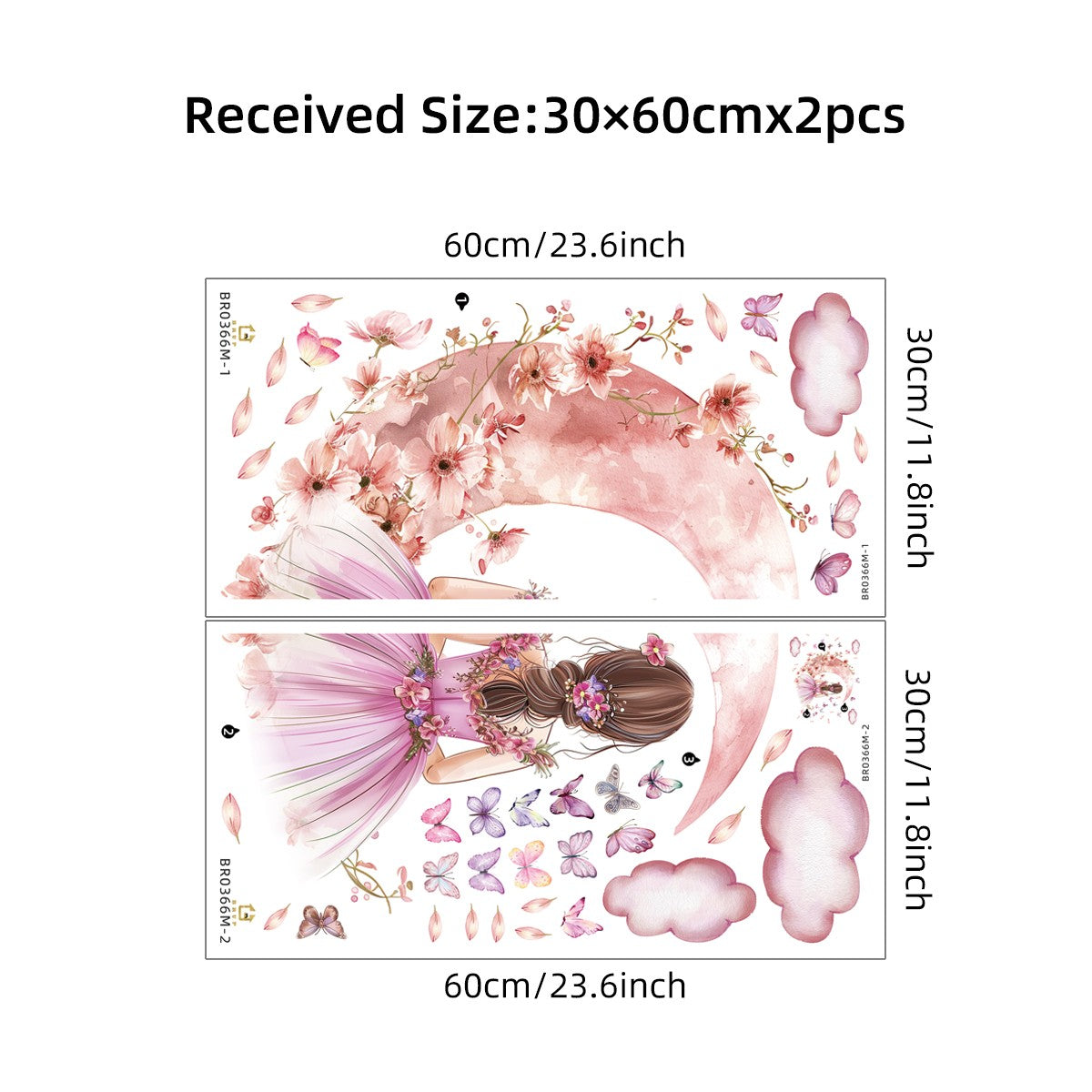 Girl Moon Butterflies Wall Stickers Kid Girls Room Bedroom Decoration Baby Nursery Home Decor Accessories Living Room Wall Decal