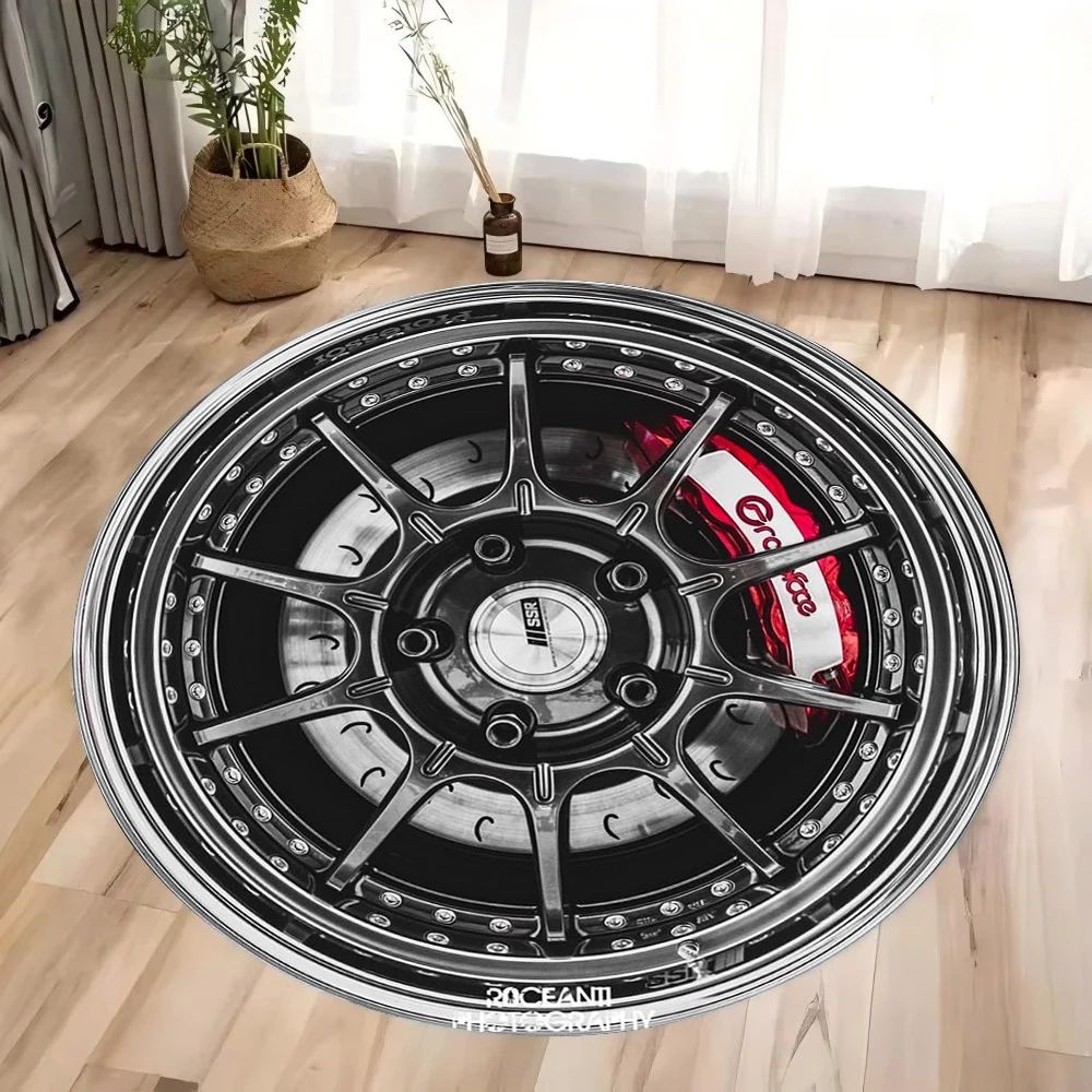 Crystal Velvet Carpet Car Wheels Printing Round Rug Soft Non-Slip Floor Mat for Living Room Bedroom Kitchen Bathroom Decor