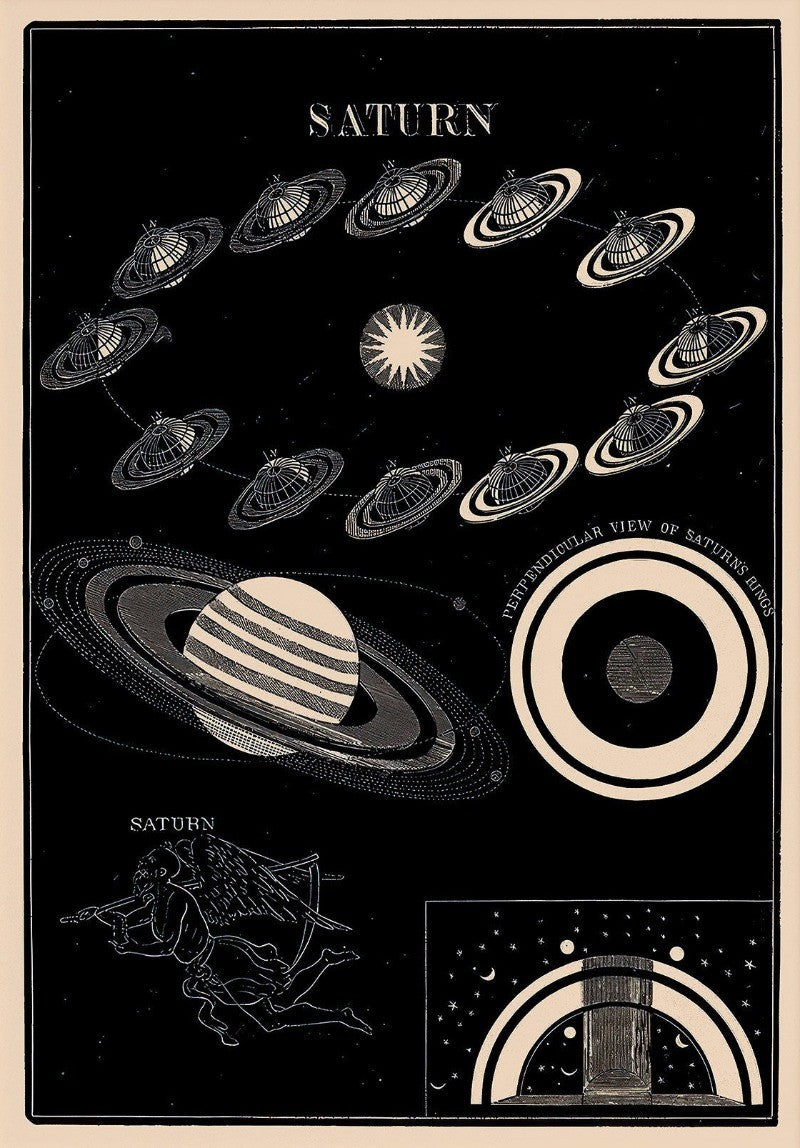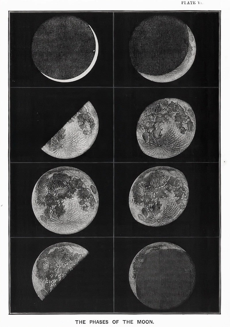 Vintage Space Astronomy Solar System Map Moon Phases Lunar Chart Poster Canvas Painting Wall Art Picture Room Home Decor