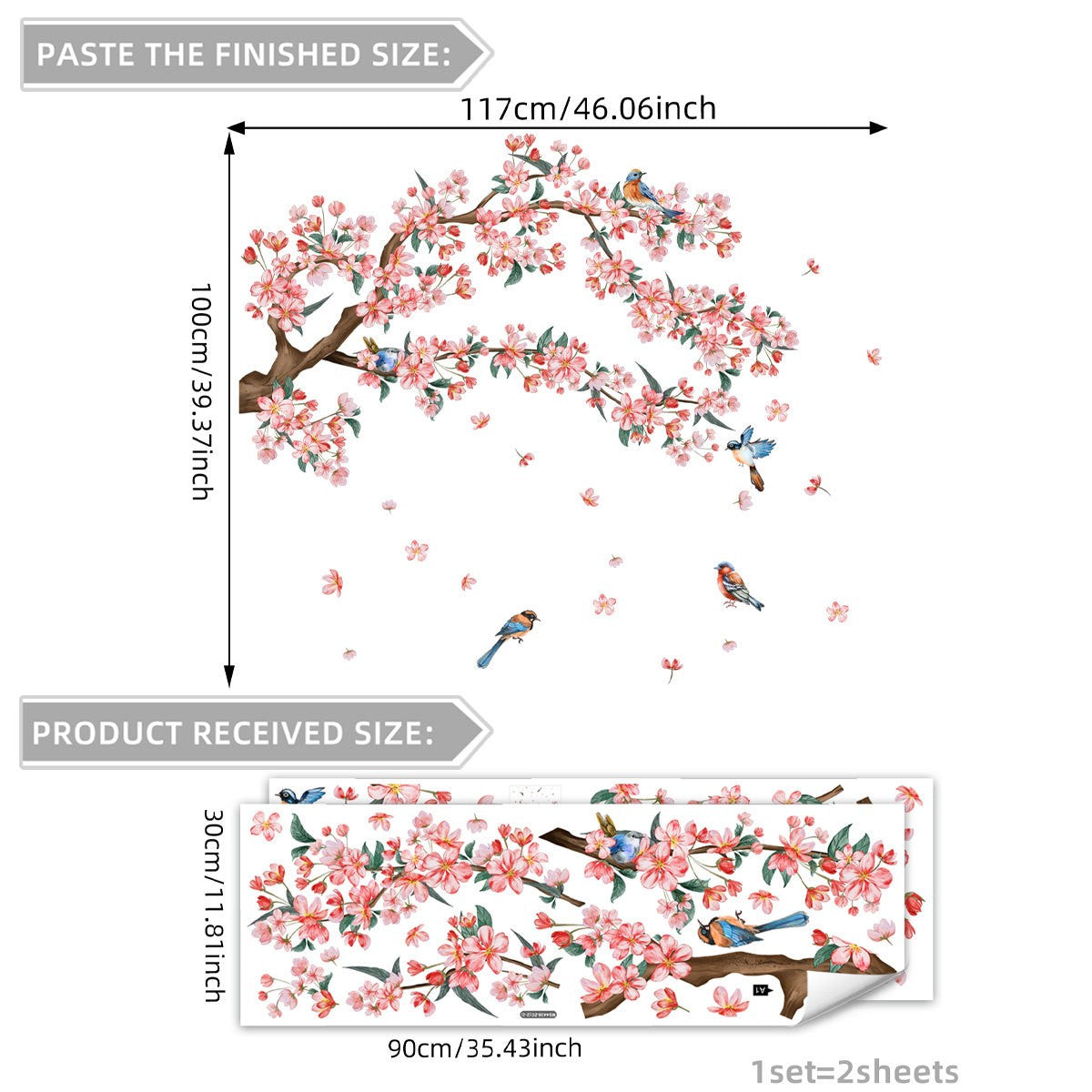 Pink Tree Branches Birds Butterflies Elf Girls Meet Wall Stickers Bedroom Children's Room Home Wall Decoration Self-adhesive