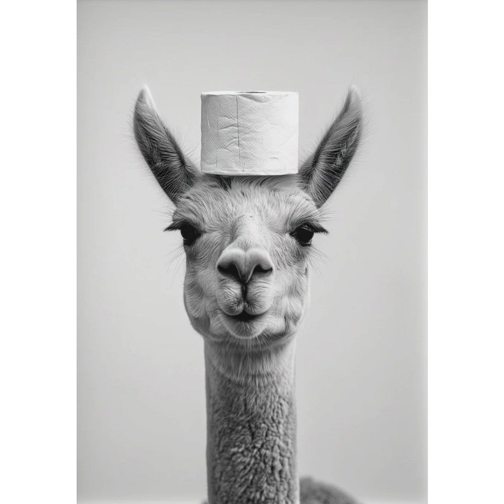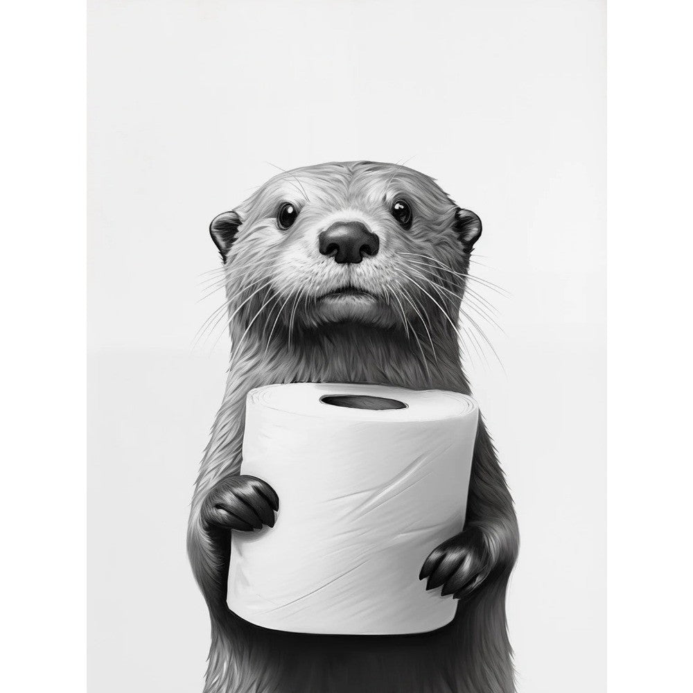 Black and White Cute Animal and Toilet Paper Poster Lion Owl Cat Dog Canvas Painting Wall Art Bathroom Living Room Home Decor