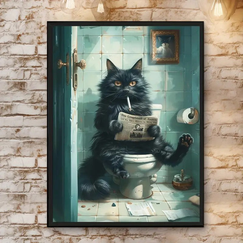 Art quote you are pooping black cat kitten reading newspaper in toilet funny animal poster retro art living room decoration