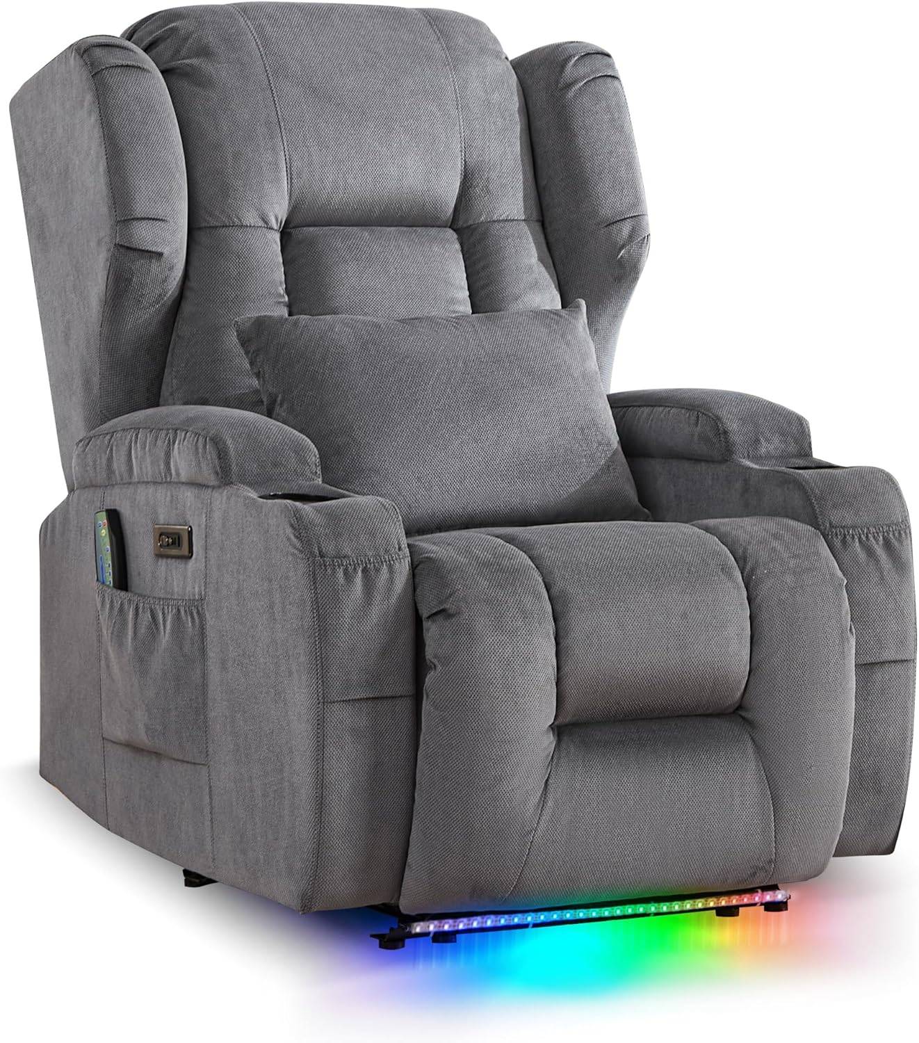 Recliner Chair for Adults, Power Reclining Sofa Chair Home Theater Seating with Vibration Massage and Heat, LED Ambient Light