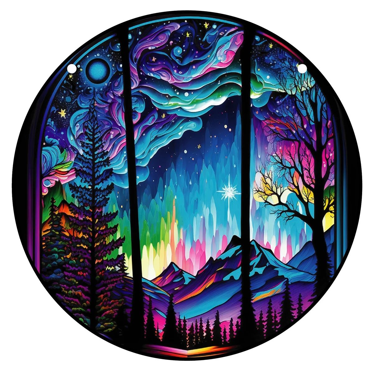 Starry Night Sky Round Acrylic Painted Home Living Room Window Wall Hanging Craft Party Car Pendant Retro Decoration Accessory