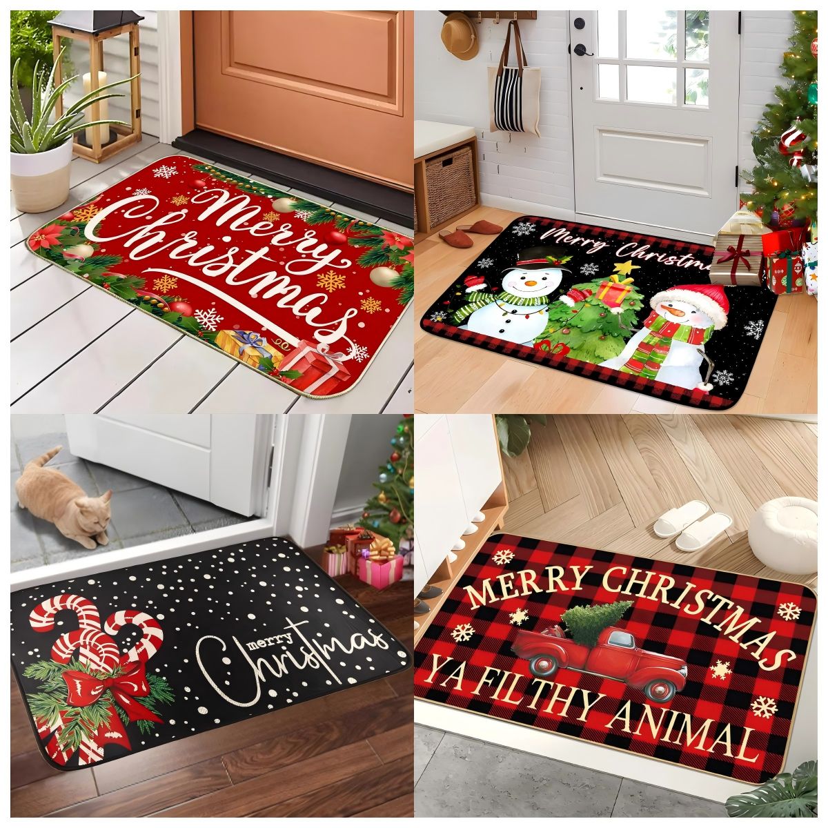 VIKAMA Christmas Doormat, Merry Christmas Decorative Rug, Indoor/Outdoor Entry Mat, Durable and Easy-to-Clean Home Decor