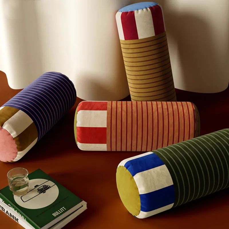 Medieval Color Long Round Pillows Retro Stripe Cushion Soft Luxury Velvet Decorative Pillow For Sofa Chair Home Decorations