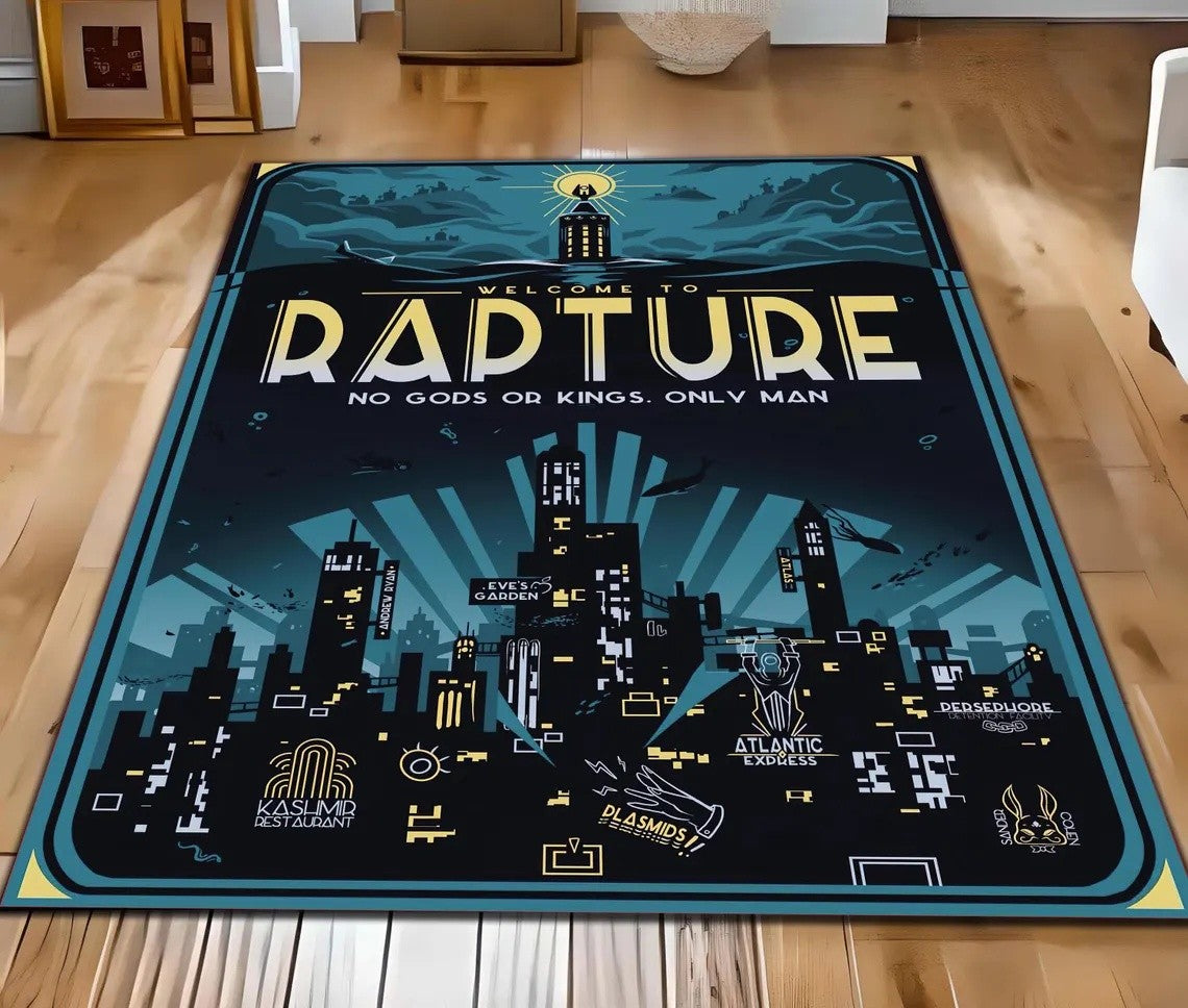 Bioshock Rapture City Carpet Gamer Room Decor Vintage Game Rug Bioshock Rapture City RugGamer Room Decor Vintage Game Rug