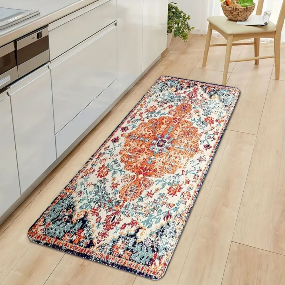 VIKAMA 1/2PCS Boho Floral Hallway Runner Rug Country Vintage Washable Non-Slip Soft Low-Pile Indoor Mat for Entryway Home Decor