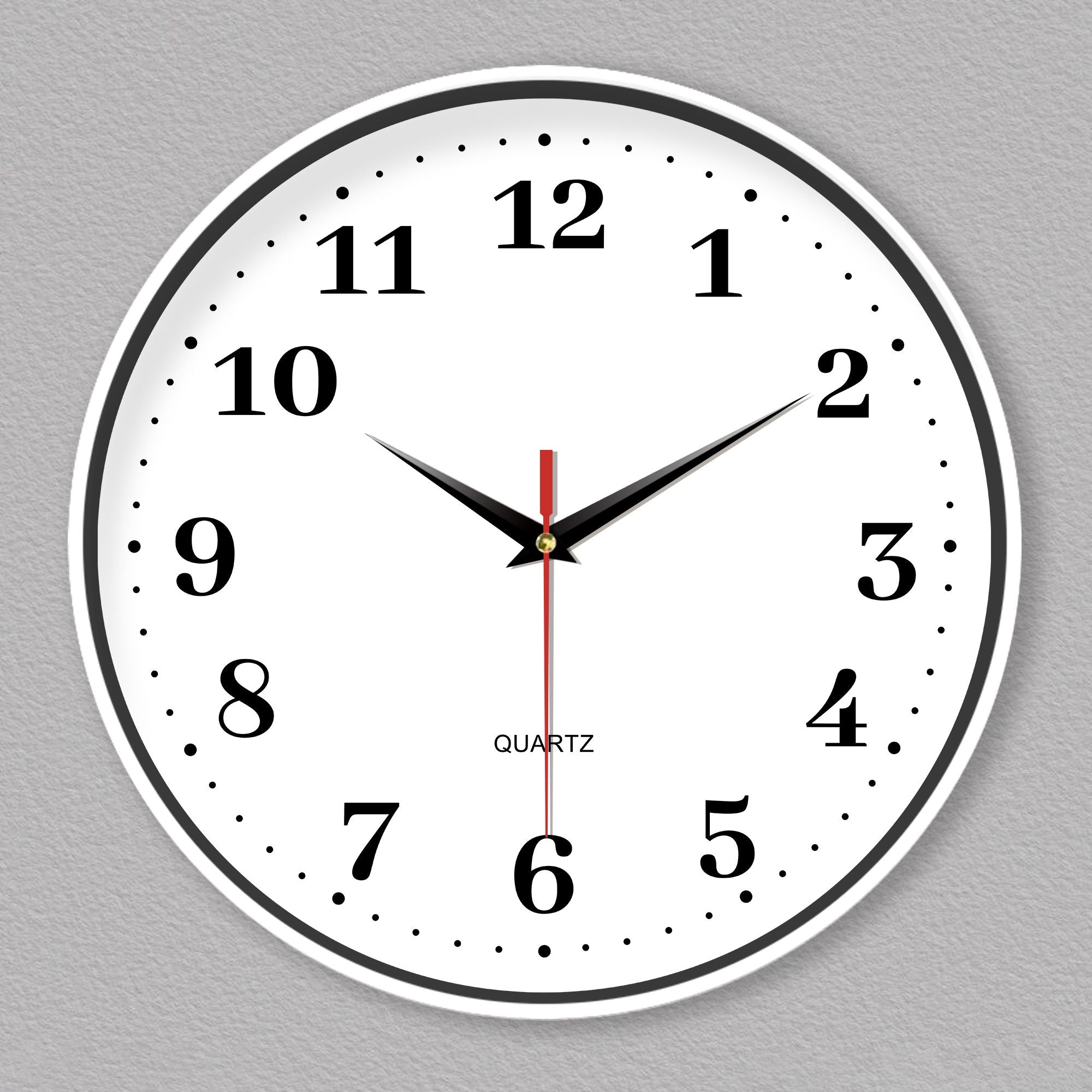 An 8-inch silent wall clock, modern white wall clock with simple design, battery operated quartz clock, adorns the family living