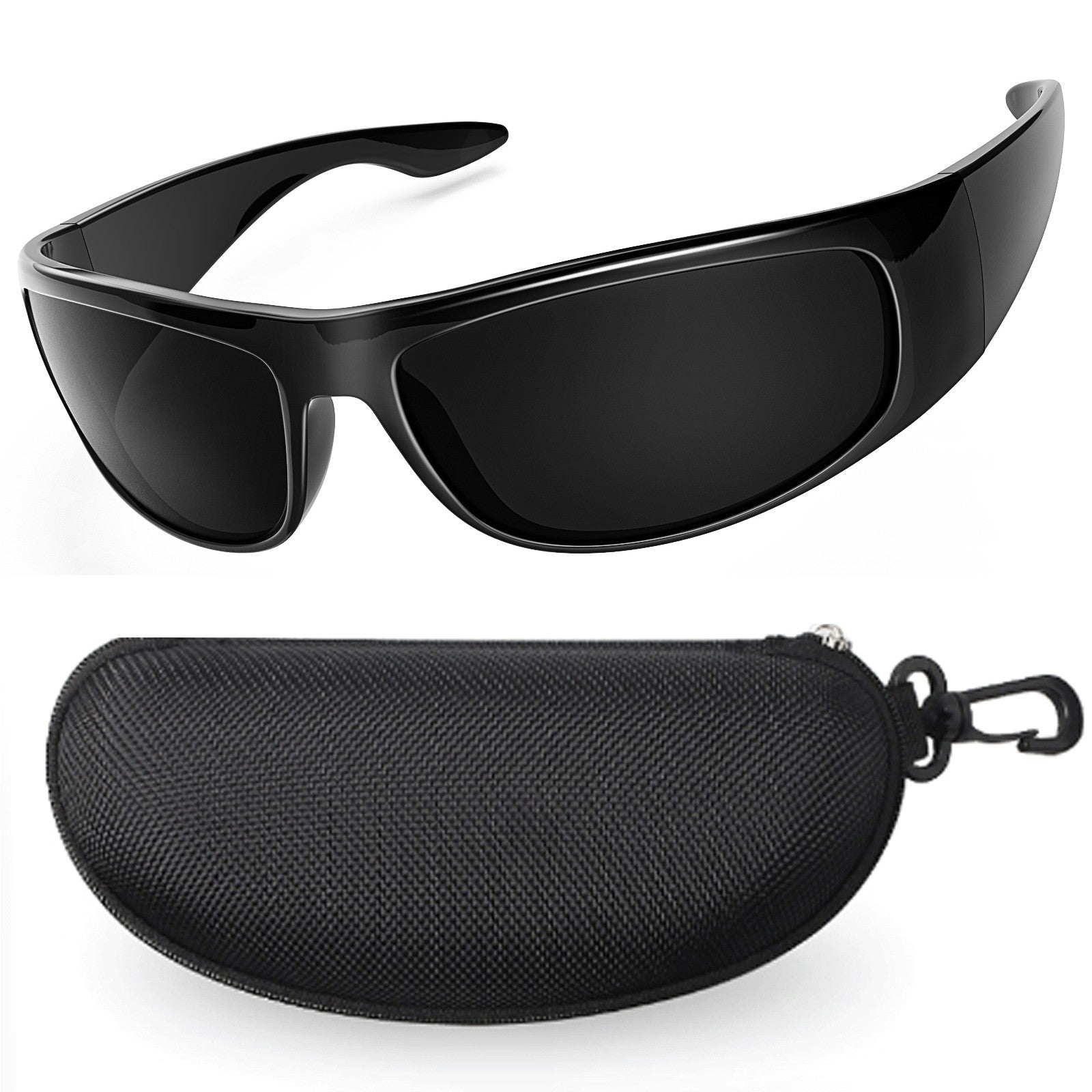 Dark Sunglasses for Men Wrap Around Sunglasses for Big Heads Men UV400 Protection glasses W8005
