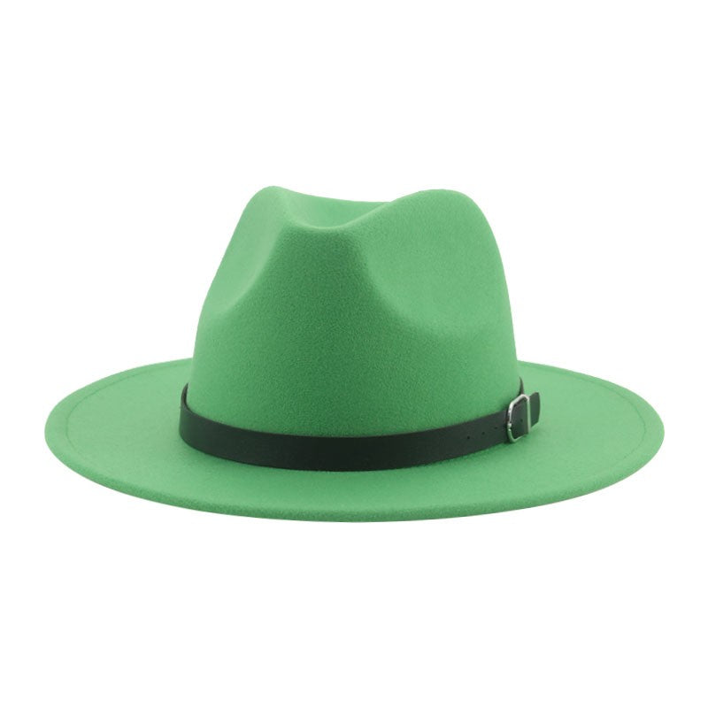 Black/green Wide Brim Simple Church Derby Top Hat Panama Solid Felt Fedoras Hat for Men Women artificial wool Blend Jazz Cap