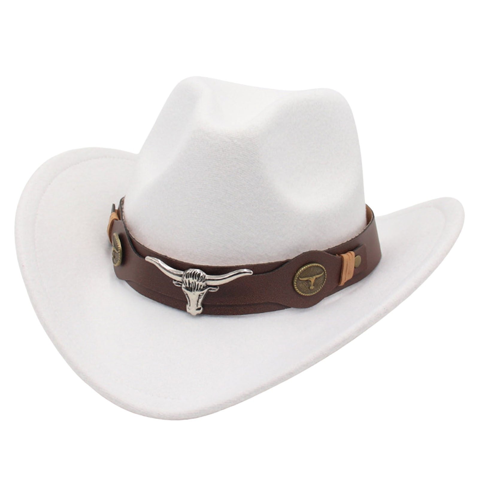 New Felt Western Cowboy Hat Ox Head Accessories Ethnic Style Roll Brim Cowgirl Cap with Cow Band Soft Jazz Fedora Hats Men