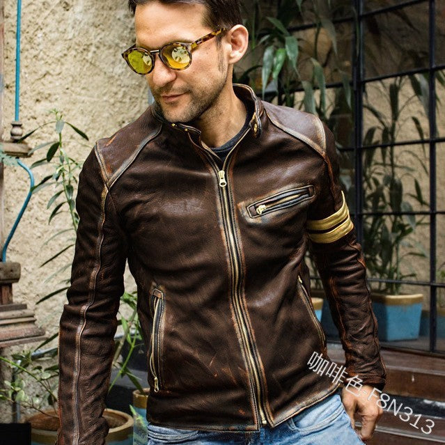 Cafe Racer Leather Jacket Classic New Slim Men's Biker Vintage Motorcycle Biker Jacket Aviator Motor Autumn Coats