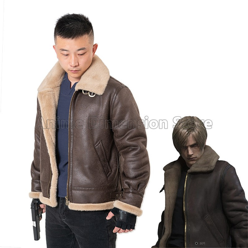 Game Biohazard Resident Remake Leon Scott Kennedy Cosplay Costumes Faux Leather Jacket Role Play Coat For Man