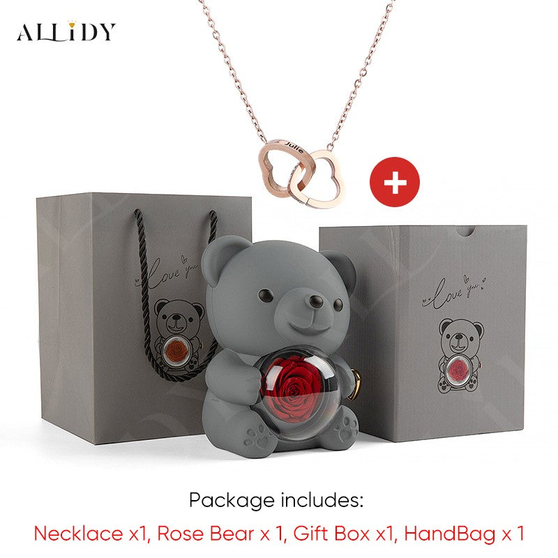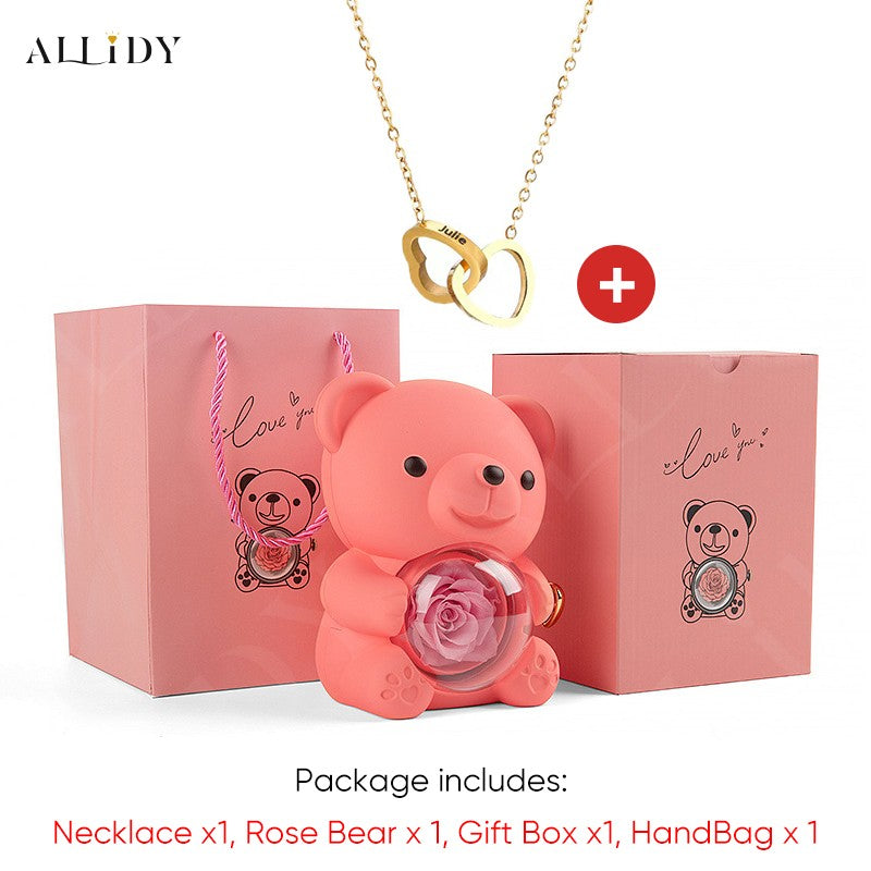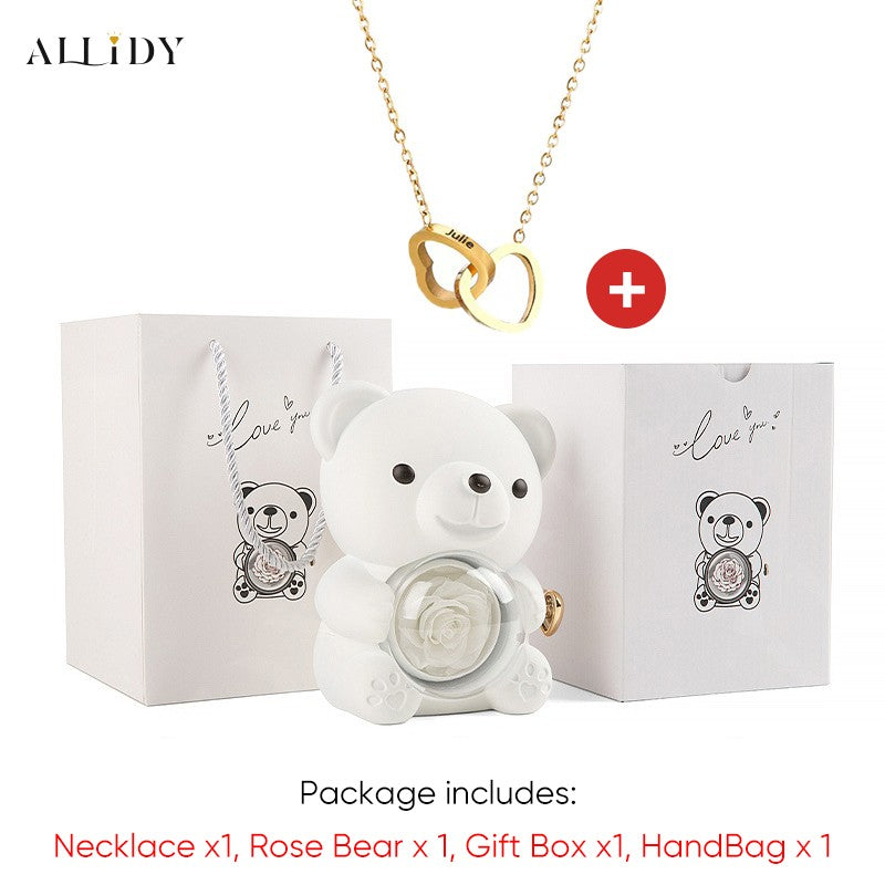 2025 Hot Eternal Rose Teddy Bear Gift Box with Custom Necklace Jewelry Set Valentine's Birthday Holiday Gift Back School Gift