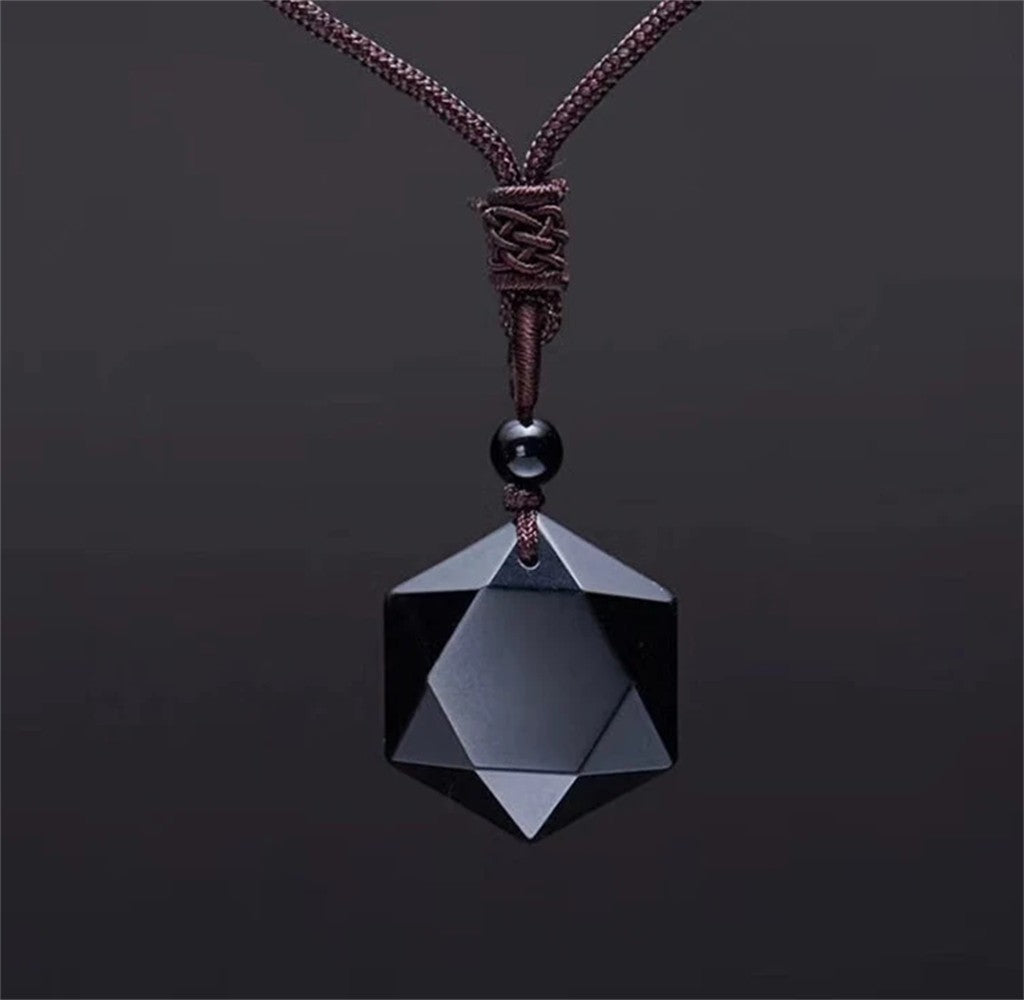 New Fashion Black Obsidian Pendant Necklace Obsidian Star Pendant Lucky Love Crystal Jewelry With Free Rope Drop shipping