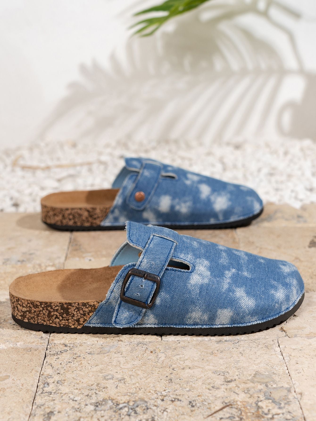 Men's Mule Shoes, New Autumn Vintage Trendy Casual Slip-On Shoes, Closed-Toe Half-Slip Flat Sandals with Adjustable Buckle for Free Adjustment/Pvc Cork Sole