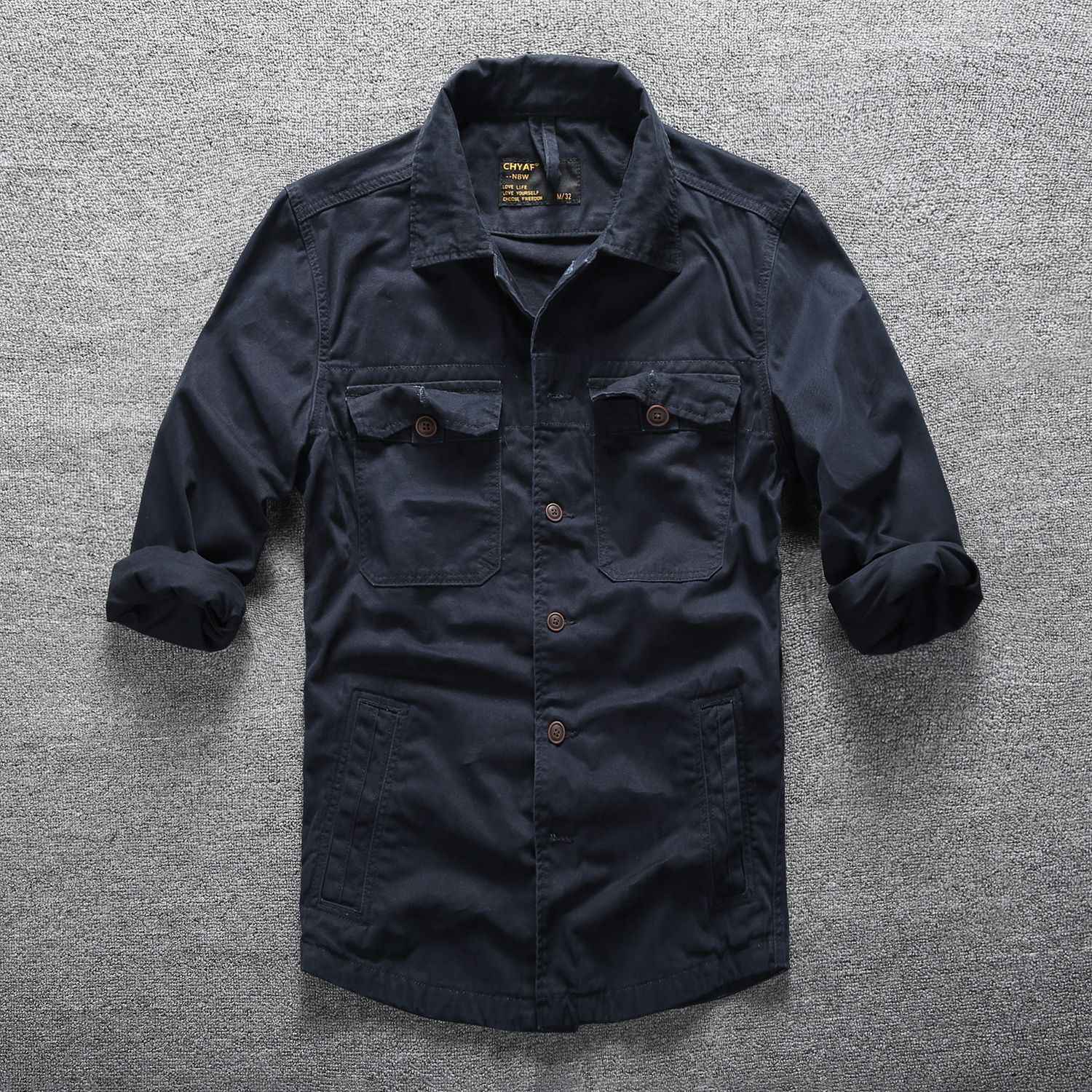 Heavy wash to make old striped shirt men's heavy chunky cargo denim jacket Autumn vintage Amei khaki coat