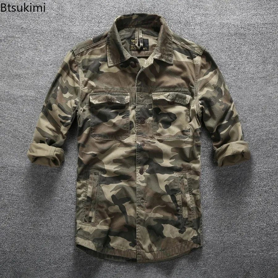 2025 Men's Camouflage Cargo Shirts High Quality 100% Cotton Durable Outdoor Hiking Sport Tops Daily Casual Vintage Shirt for Men
