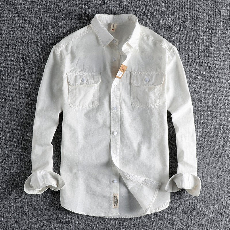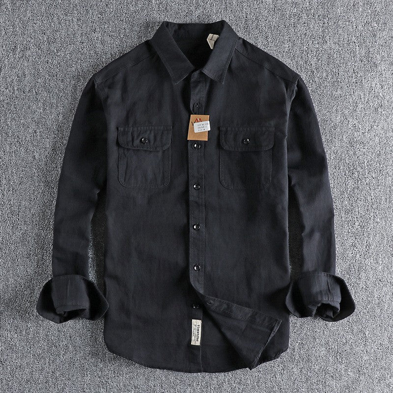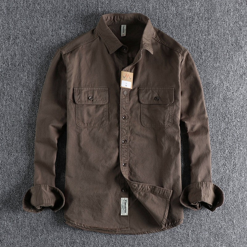 American European Vintage New Fashion Men's Solid Color Long Sleeve Cotton Casual Trendy Loose Cargo Shirts Male Pocket Clothes