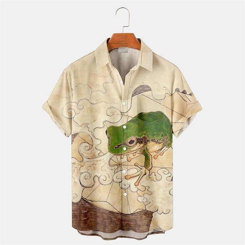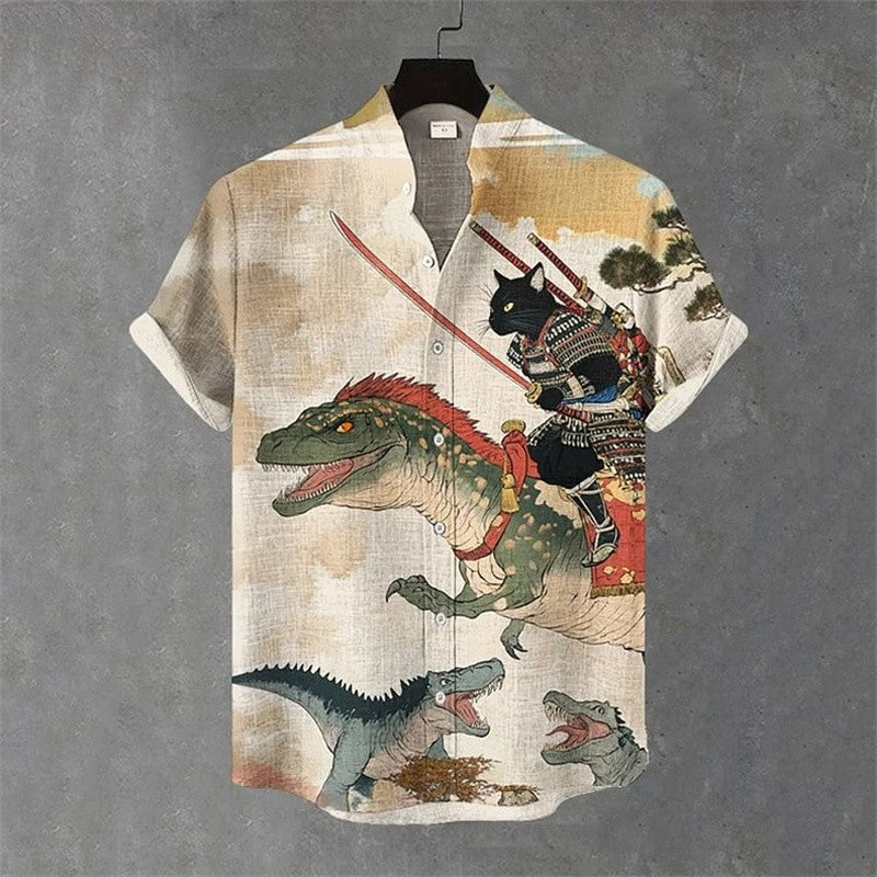 Hawaiian Summer 3D Cat Printed Men's Linen Shirt Casual Short Sleeve Shirt Loose, Vintage, Funny Men's Costume
