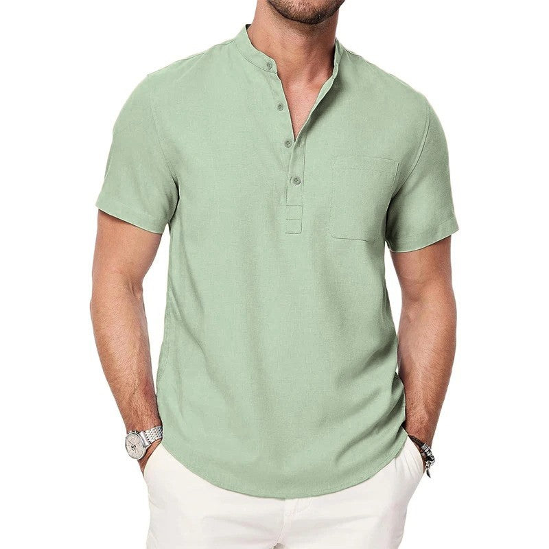 Men's Henley Collar T-shirt Summer Breathable Baggy Cotton Linen Short Sleeve T Shirts for Men Holiday Wear Tops